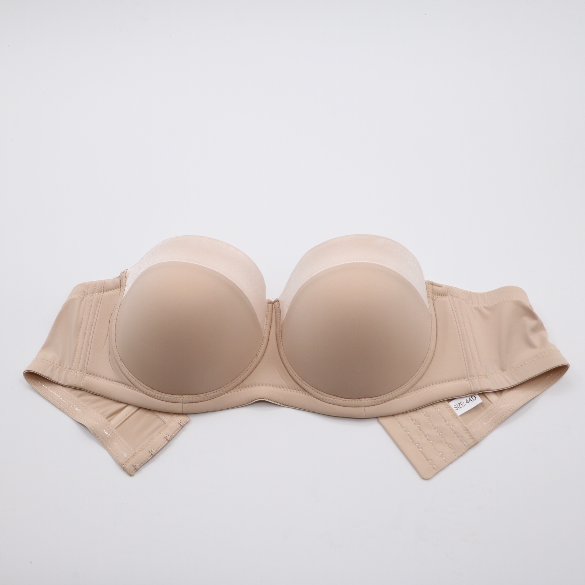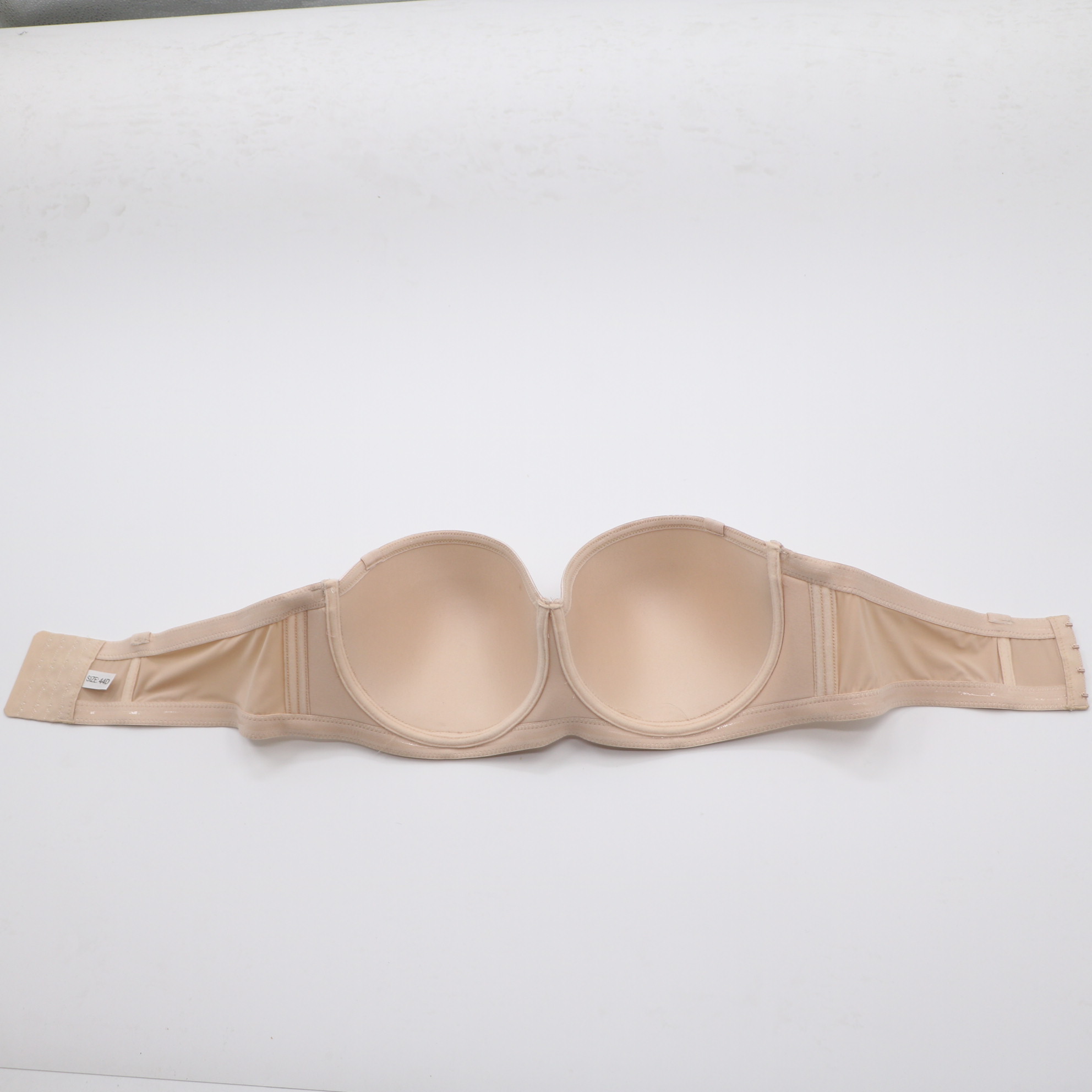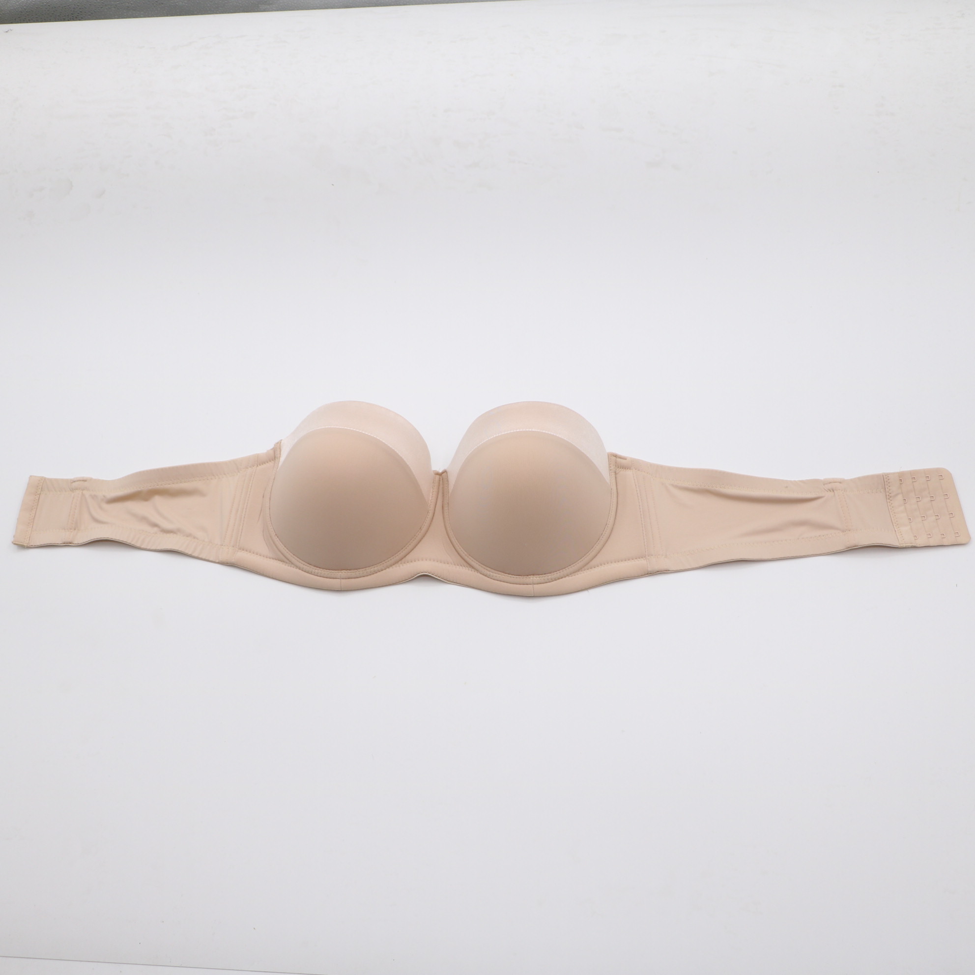 This seamless strapless bra features molded cups for gentle lift and a smooth, invisible fit under any outfit. The anti-slip silicone strip along the top edge ensures it stays in place, while the multi-position back closure provides a secure, personalized fit.