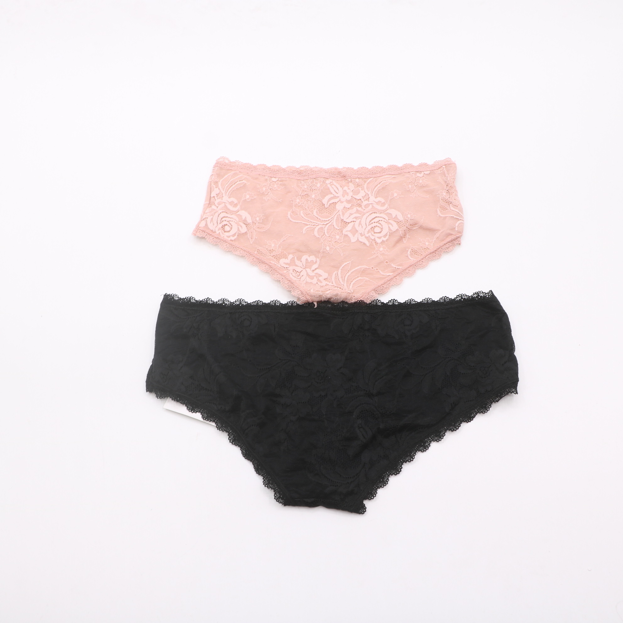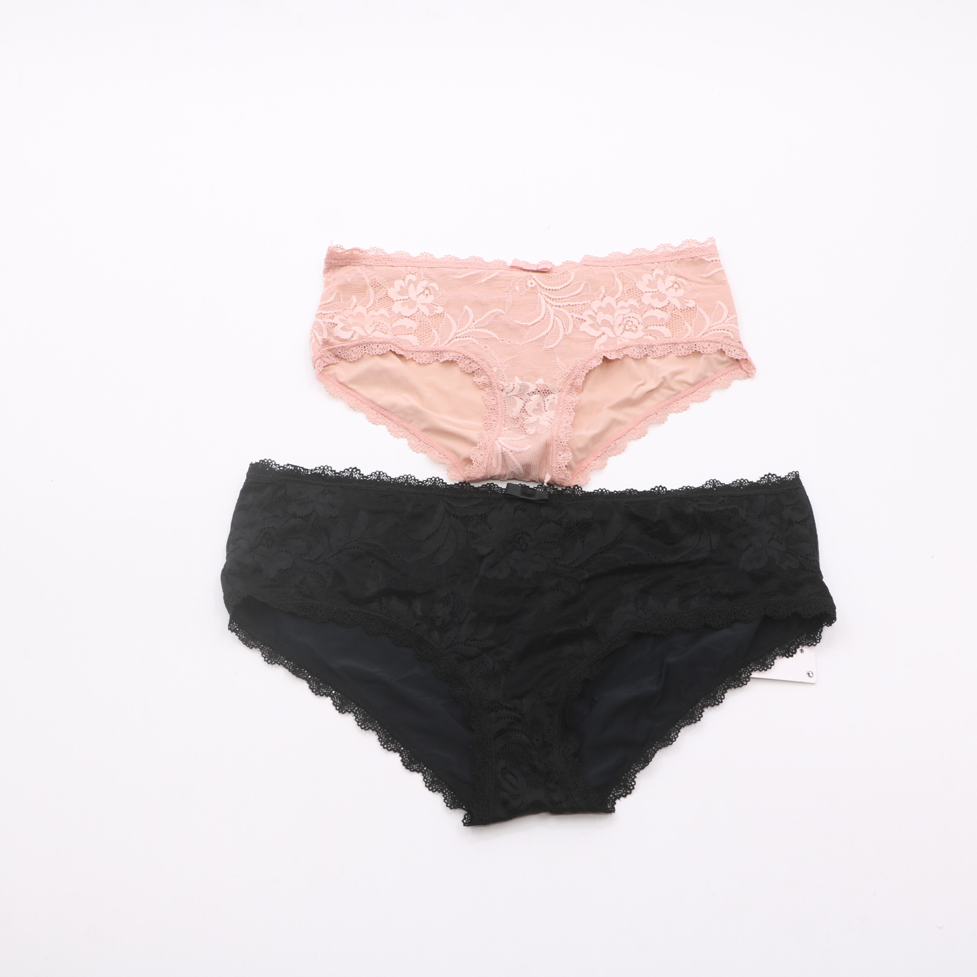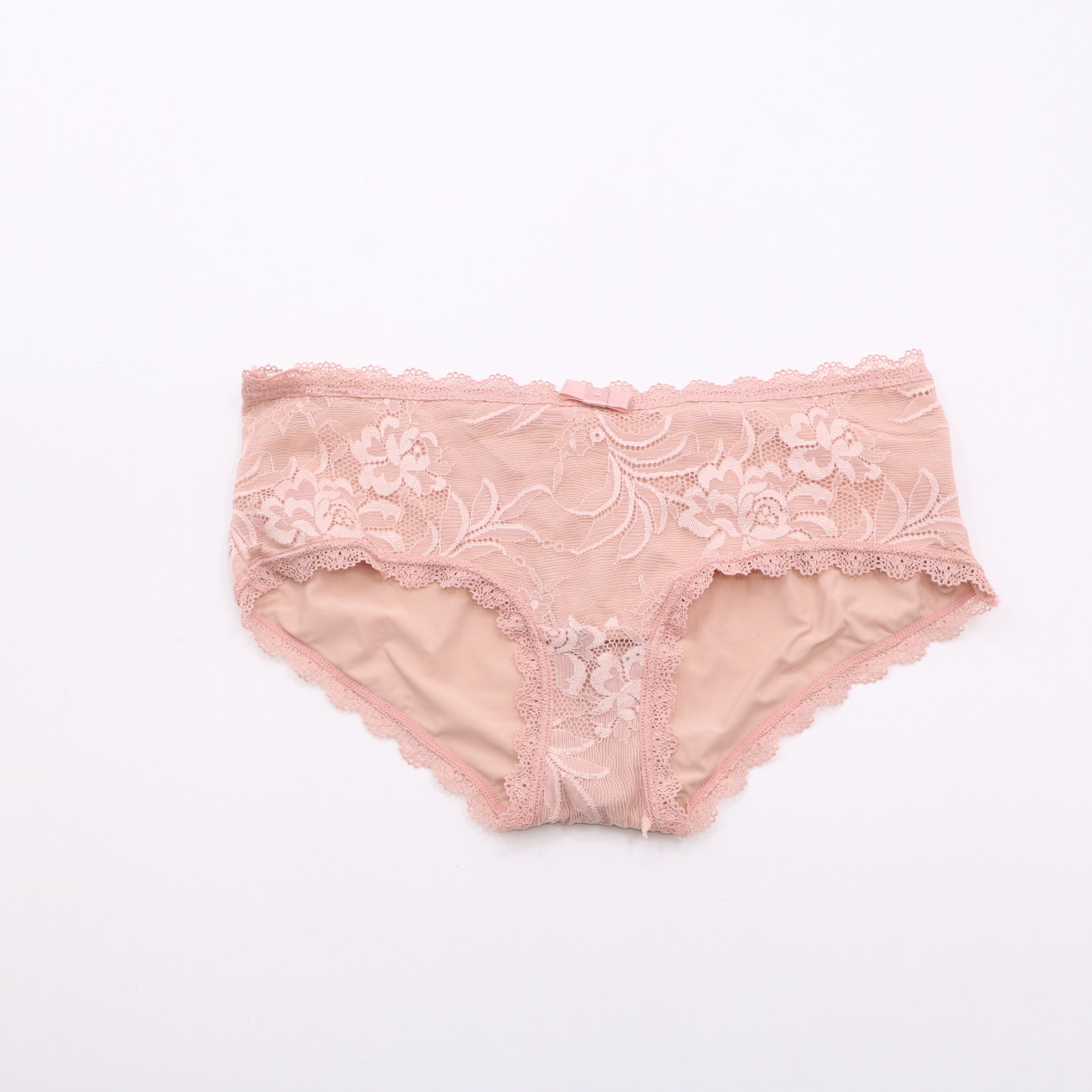 This panty features delicate floral lace with scalloped trim and a small bow detail, with a soft, smooth lining for comfort. Available in blush pink and black, it offers a feminine, elegant look for everyday wear.