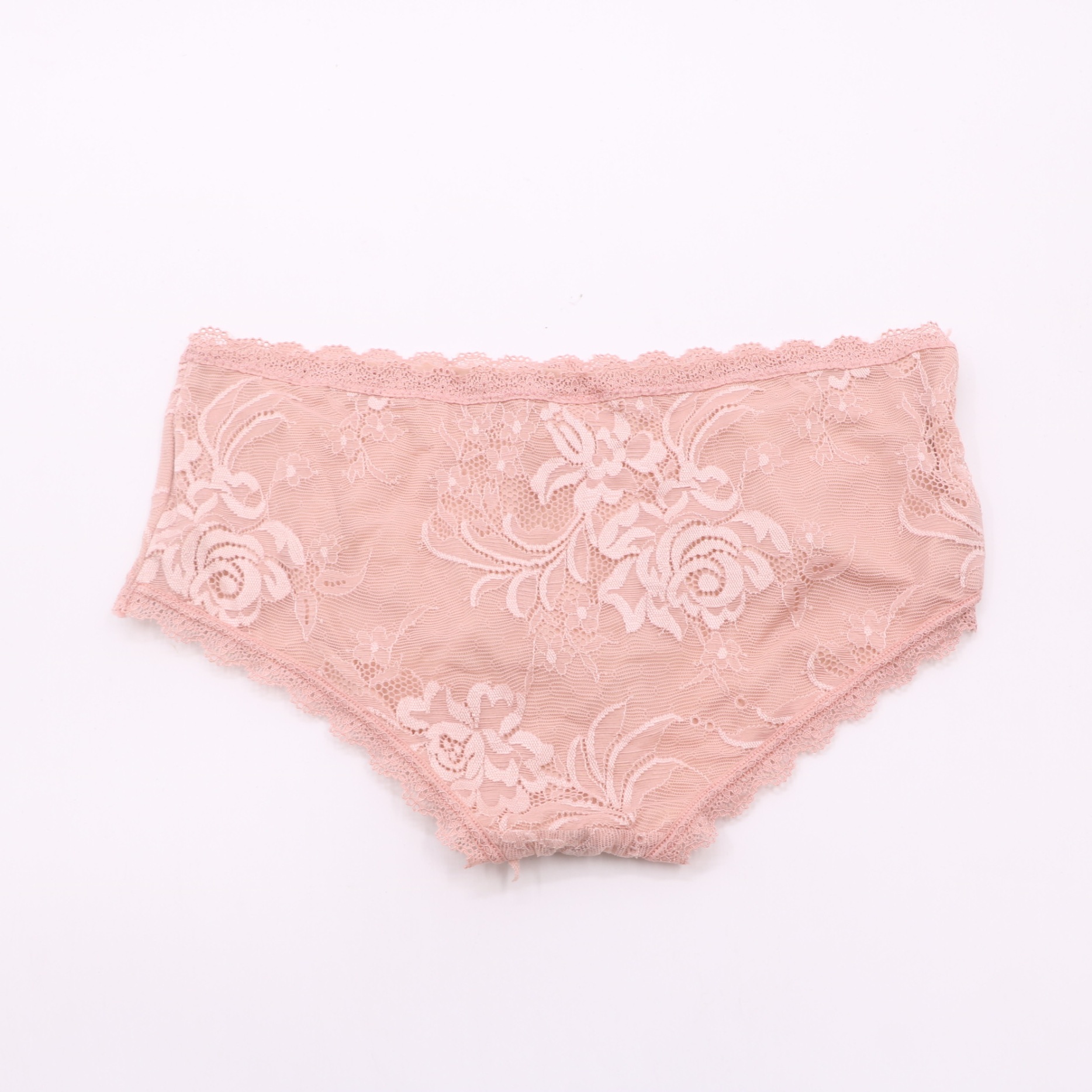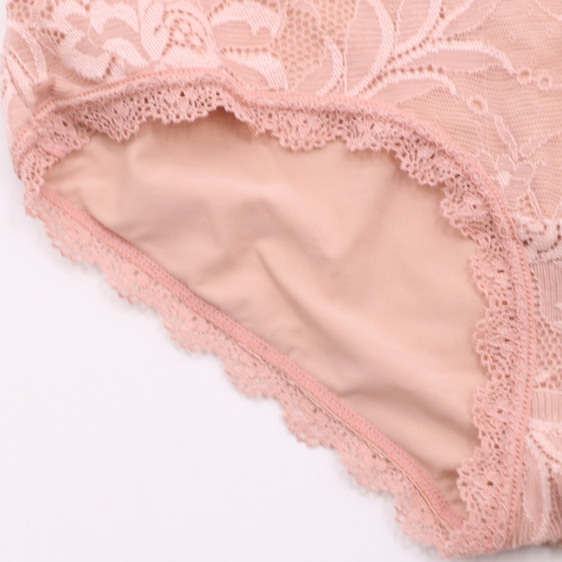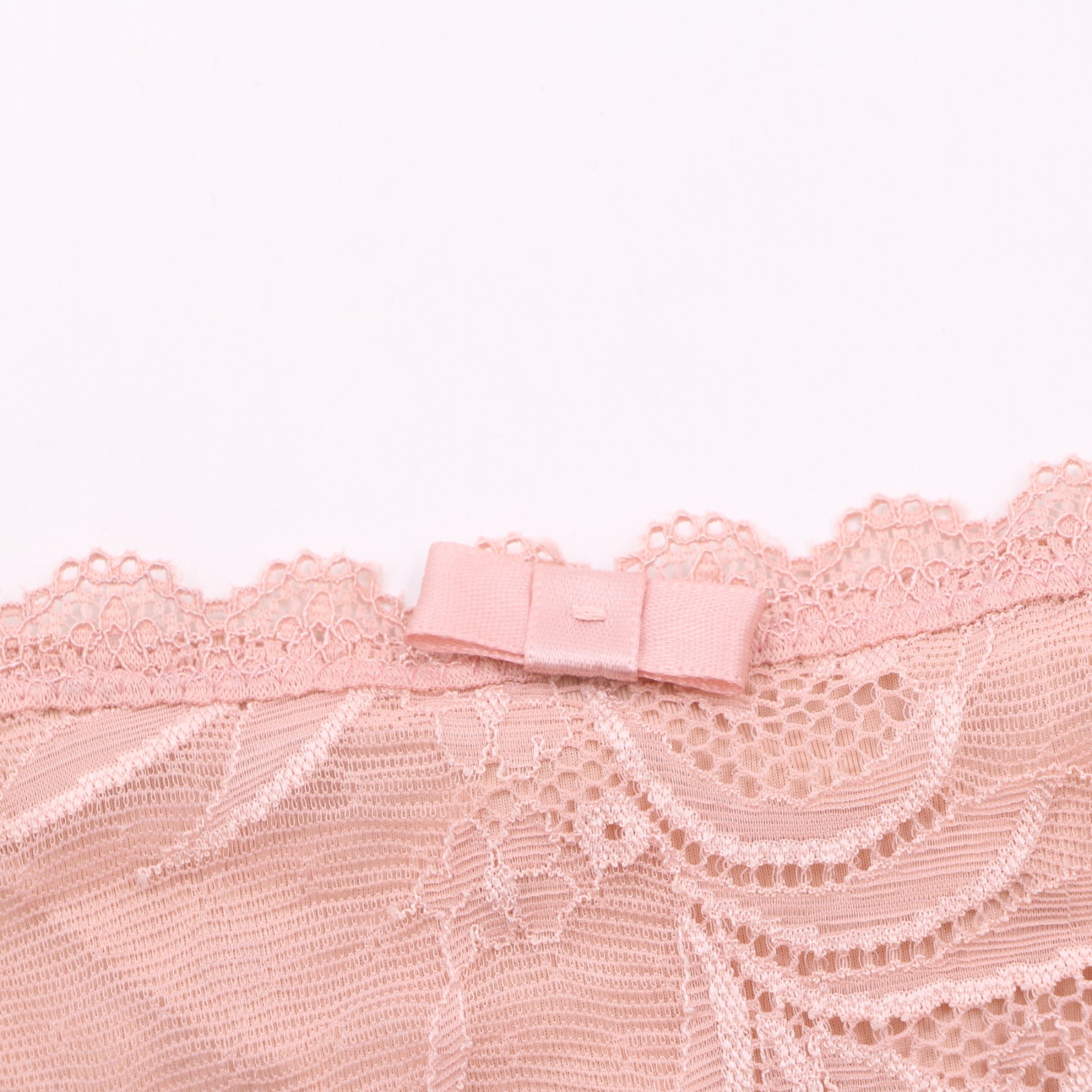 This panty features delicate floral lace with scalloped trim and a small bow detail, with a soft, smooth lining for comfort. Available in blush pink and black, it offers a feminine, elegant look for everyday wear.