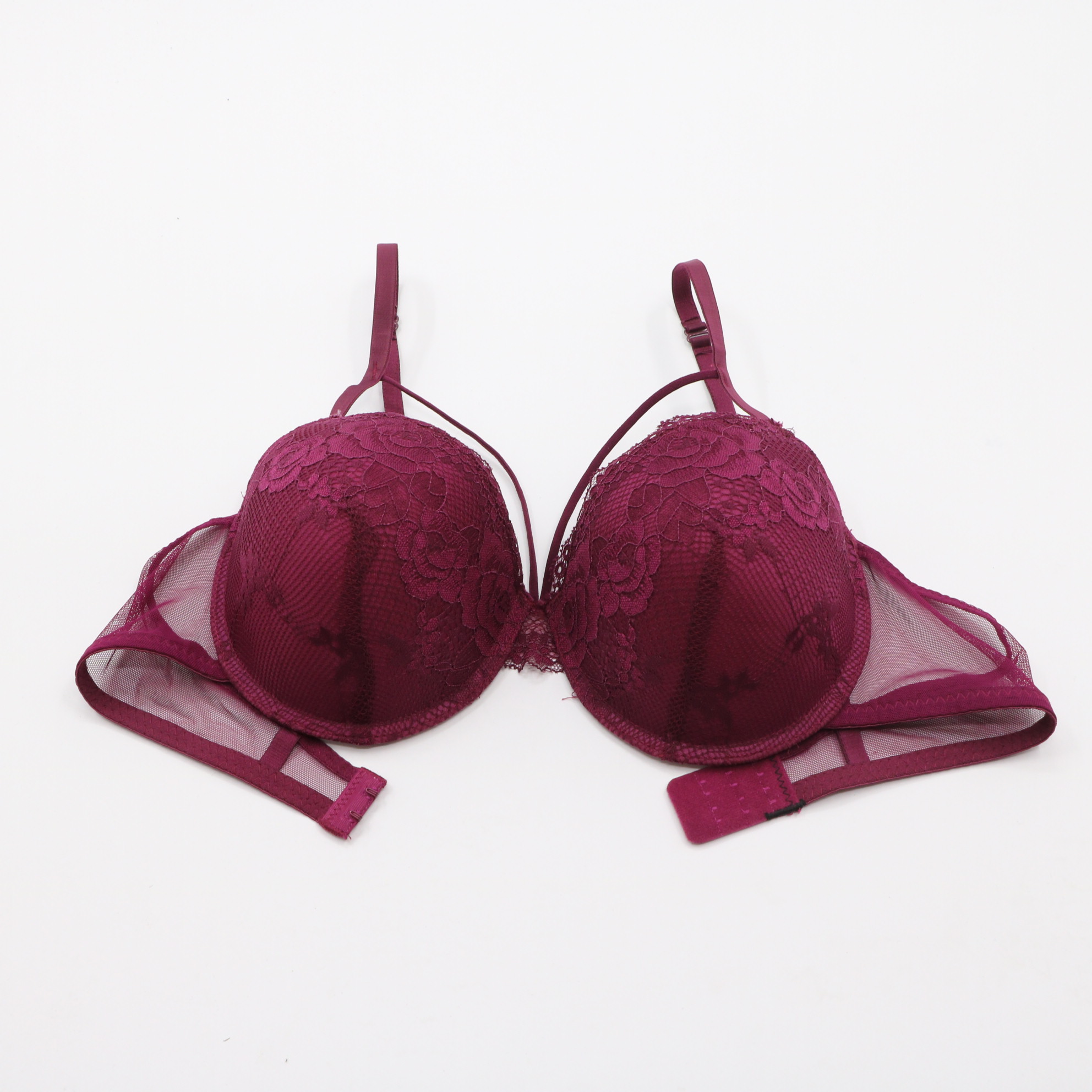 Elegant push-up bra with a delicate rose lace pattern, sheer mesh sides, and strappy front accent—ideal for special occasions and a bold silhouette.