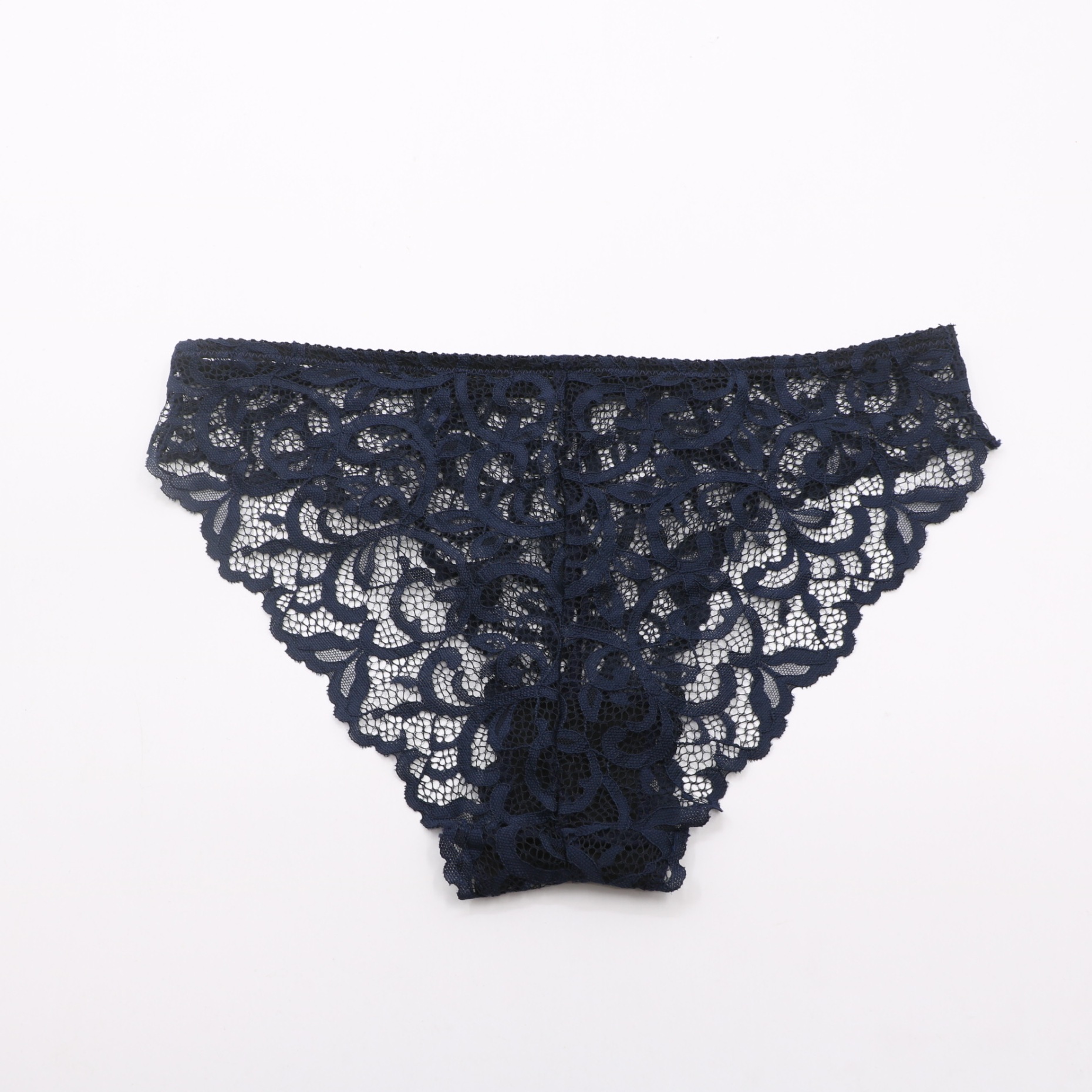 This navy blue lace panty combines delicate femininity with everyday wearability