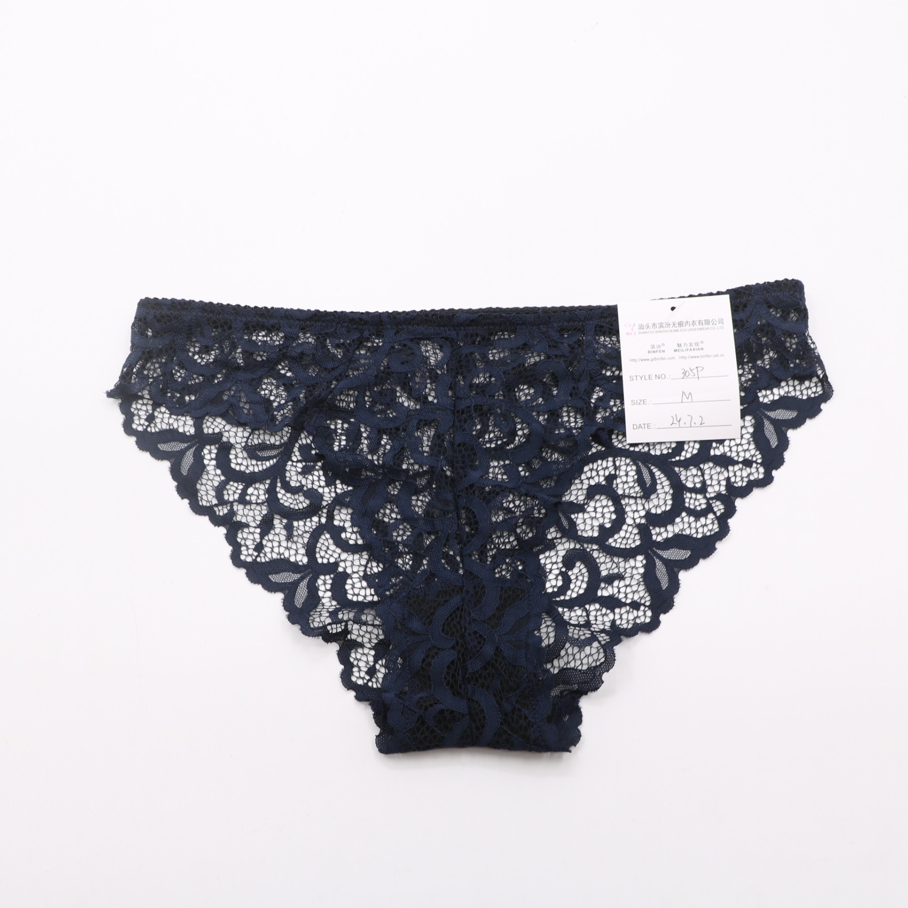 305P#Navy Blue Floral Lace Cheeky Briefs for Women