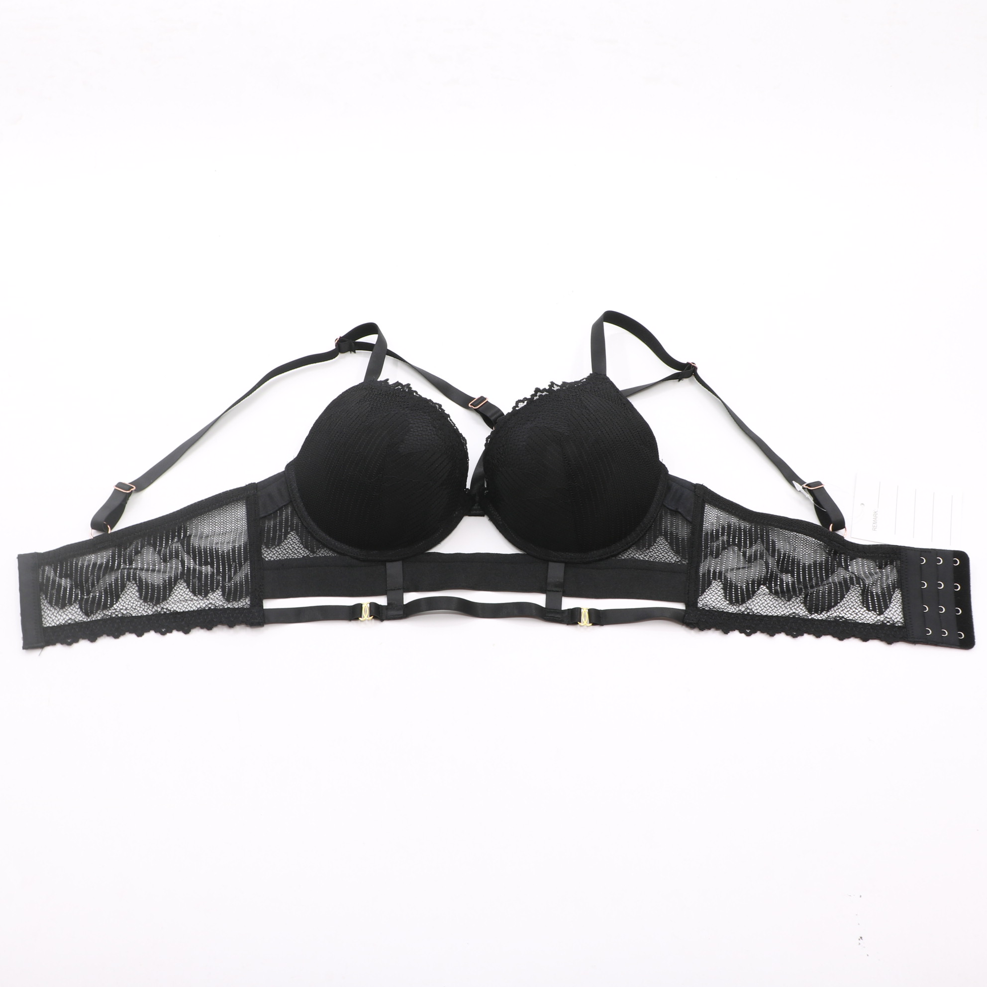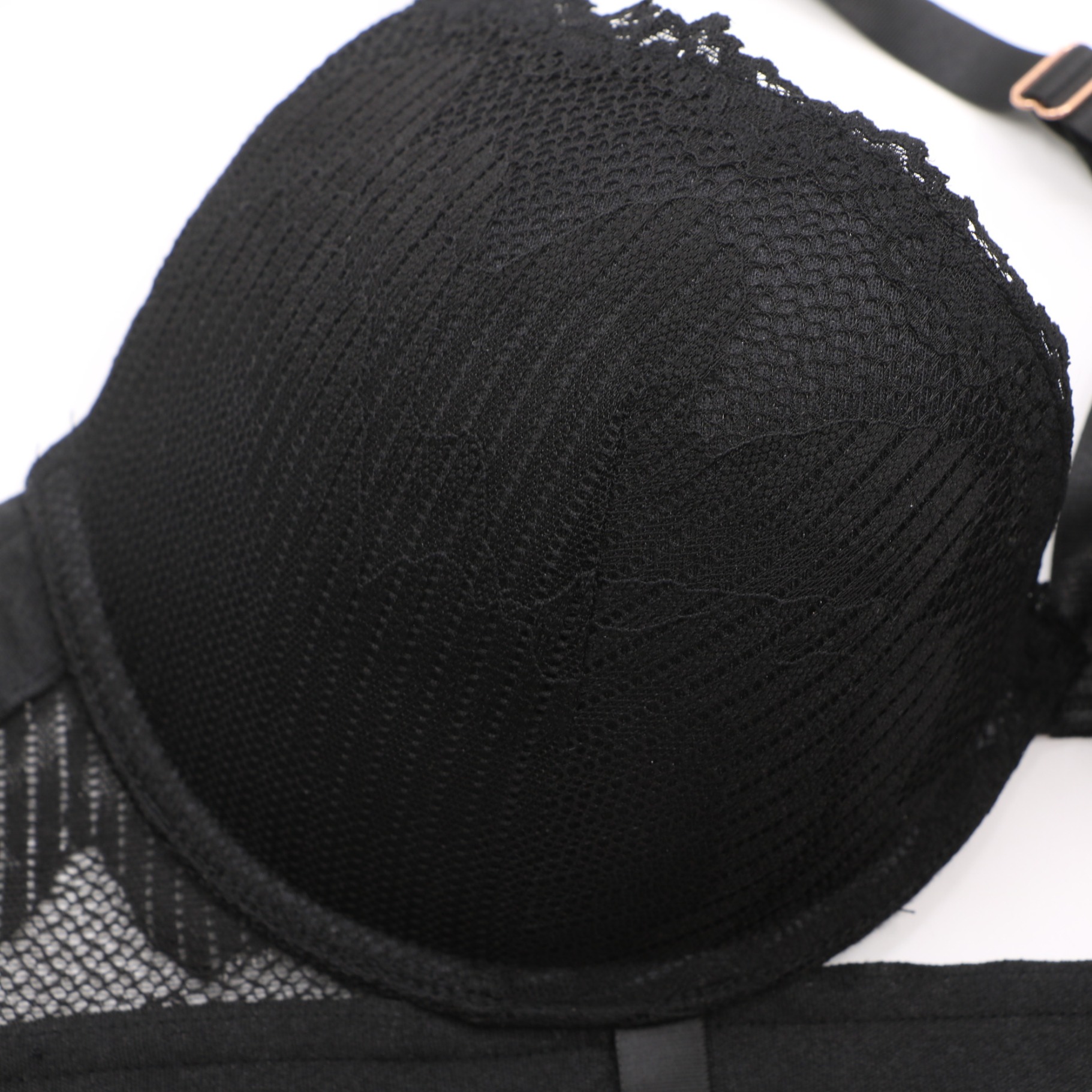 Products358#Black Lace Push-Up Bra & Panty Set, Underwire Lingerie Set for Women