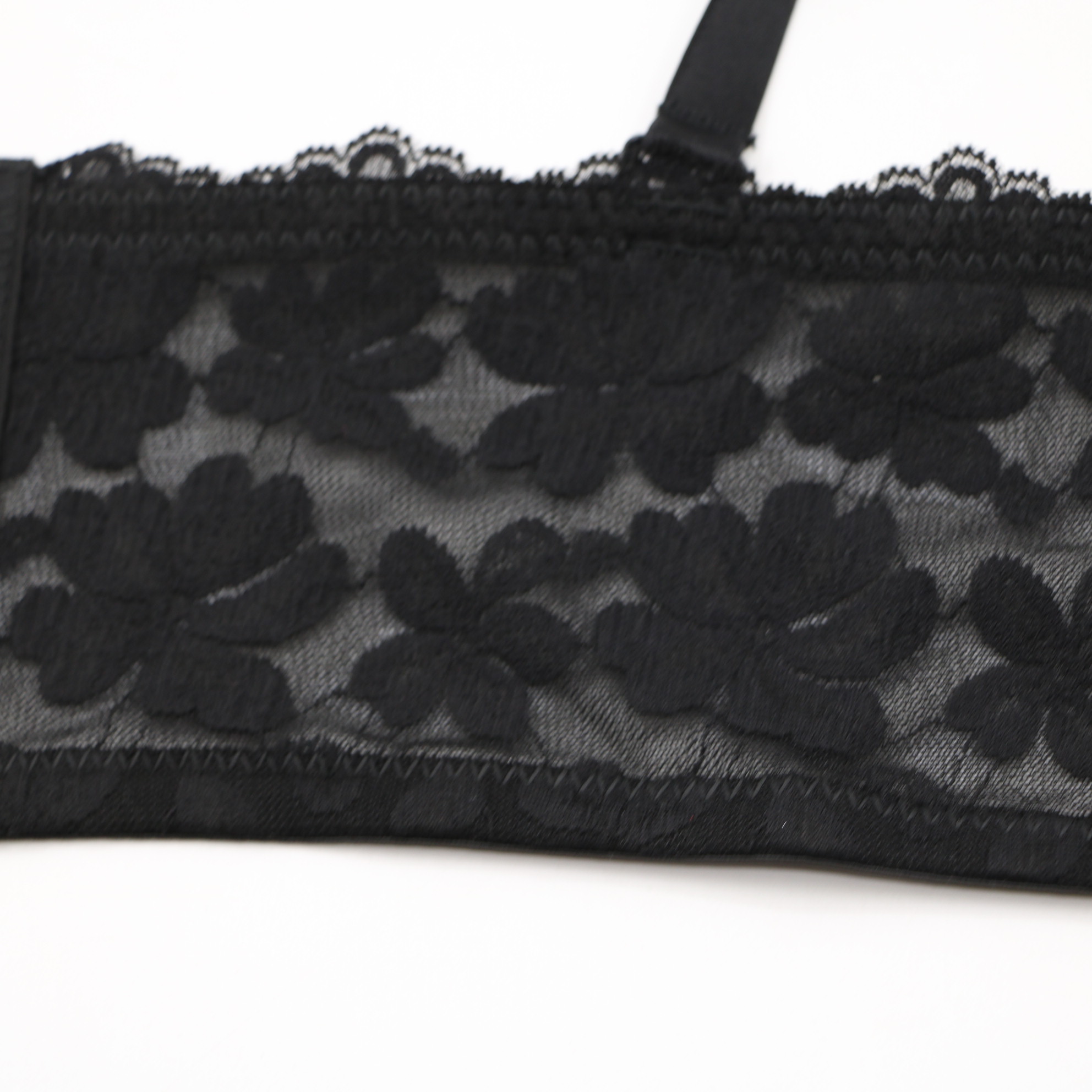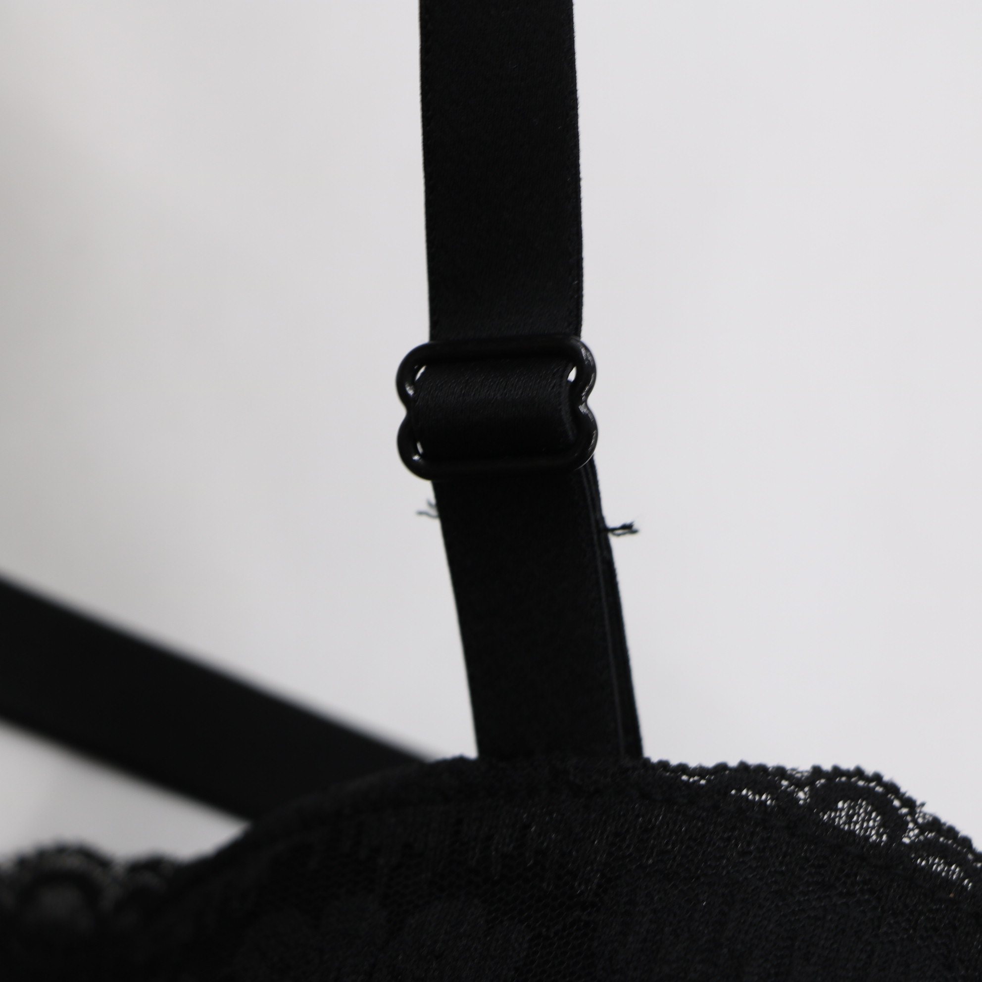 Elevate your lingerie collection with this romantic black lace bra. The multiway straps allow for versatile styling, from standard to crisscross or low-back configurations. The sheer floral lace cups and scalloped trim create a feminine silhouette, while the underwire provides natural lift and all-day comfort. Perfect for pairing with open-back dresses or blouses.