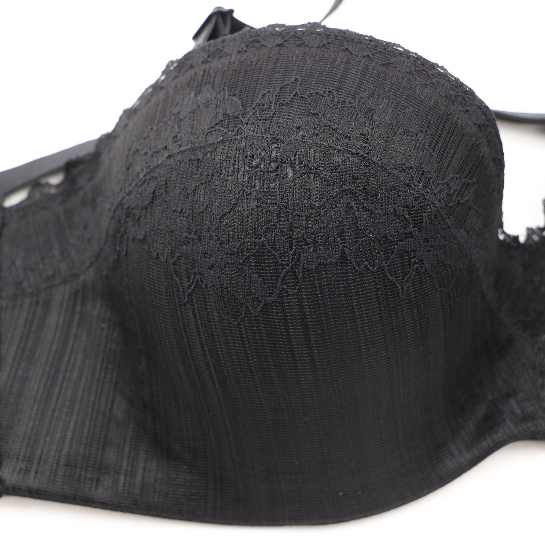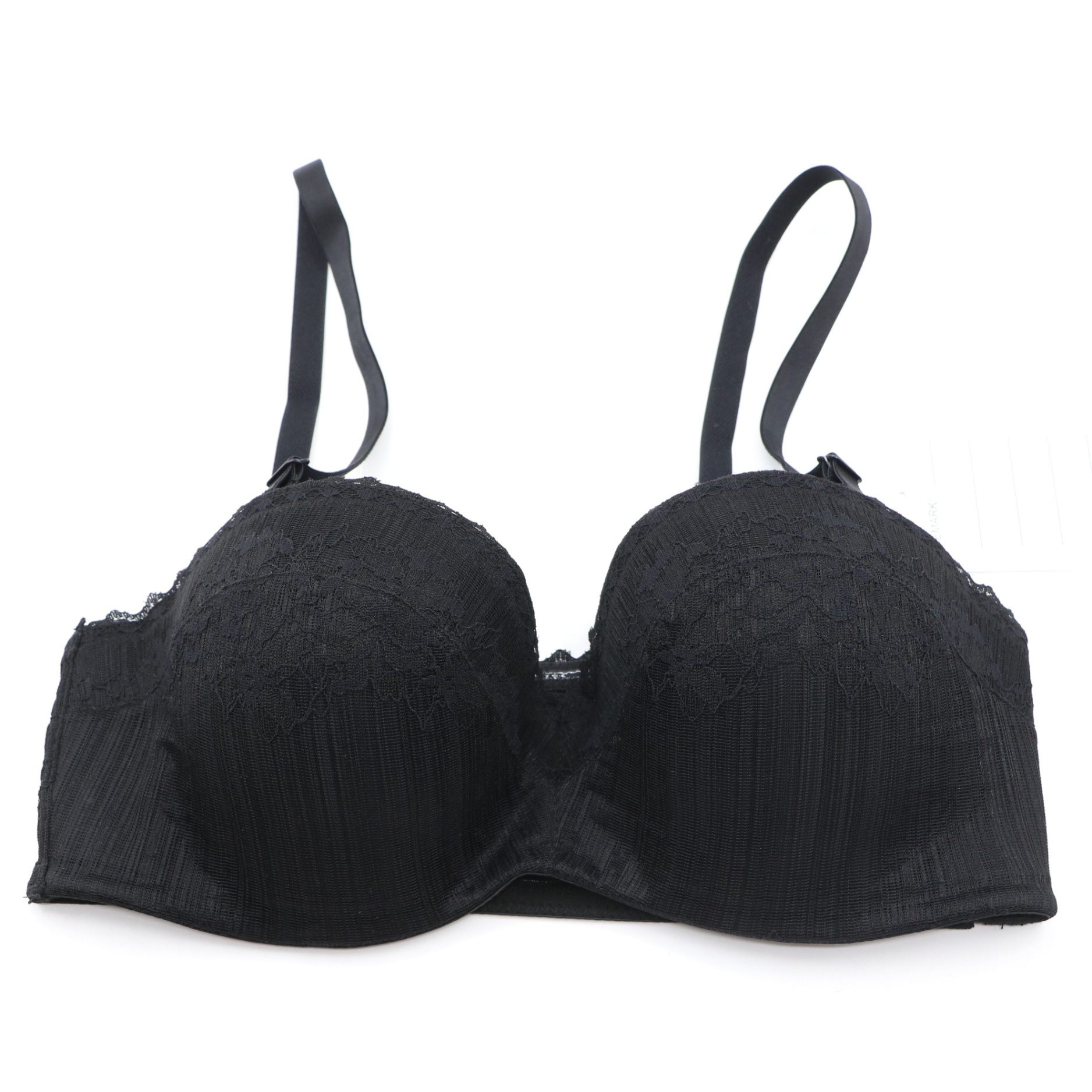 Elevate your everyday essentials with this elegant black bra. The textured ribbed fabric adds subtle depth, while the scalloped lace trim along the cup edges brings a romantic touch. The underwire cups offer natural shape and all-day comfort, making it perfect for pairing with tees, blouses, and form-fitting dresses.