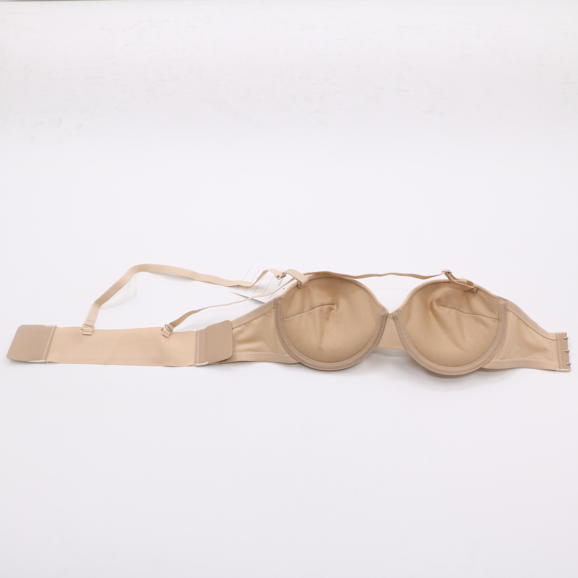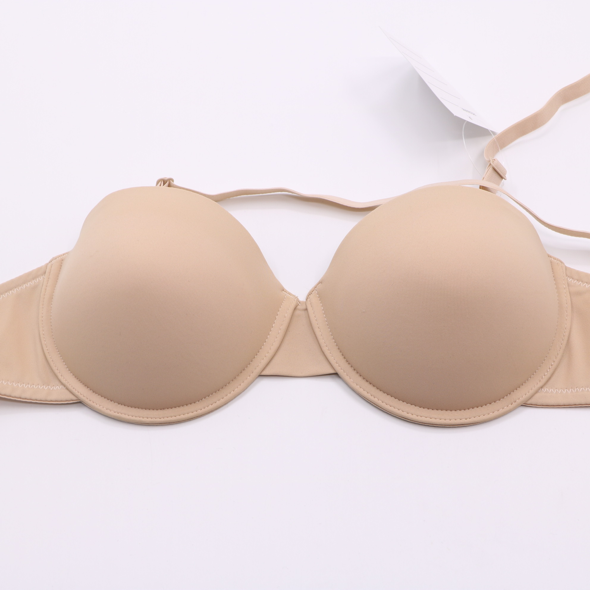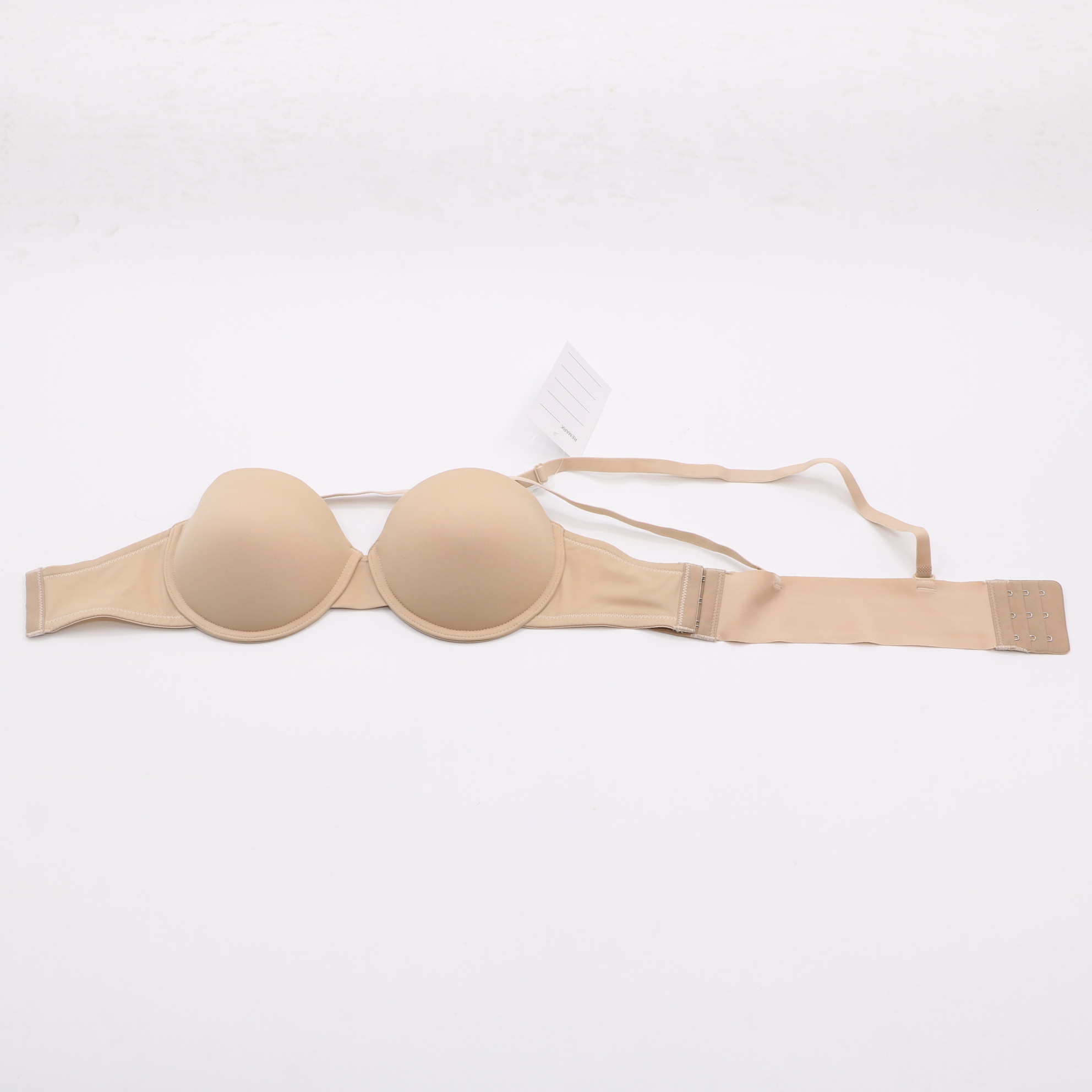 Smooth seamless fabric, push-up molded cups, and adjustable straps for invisible wear under strapless outfits.