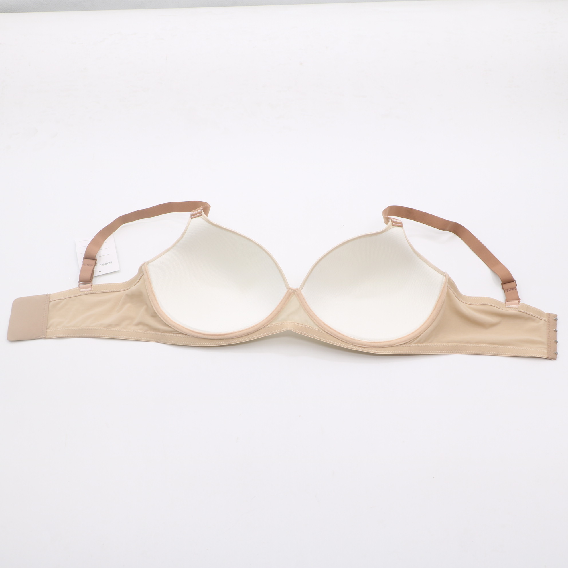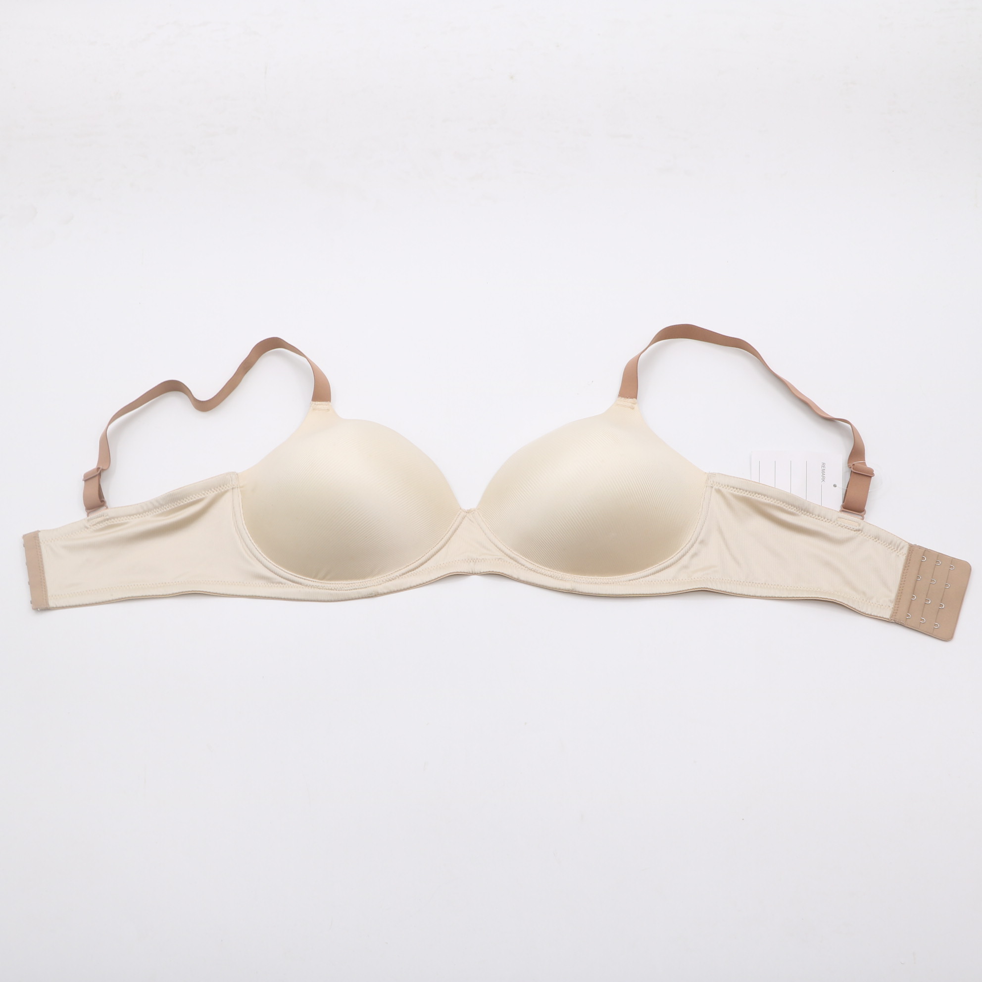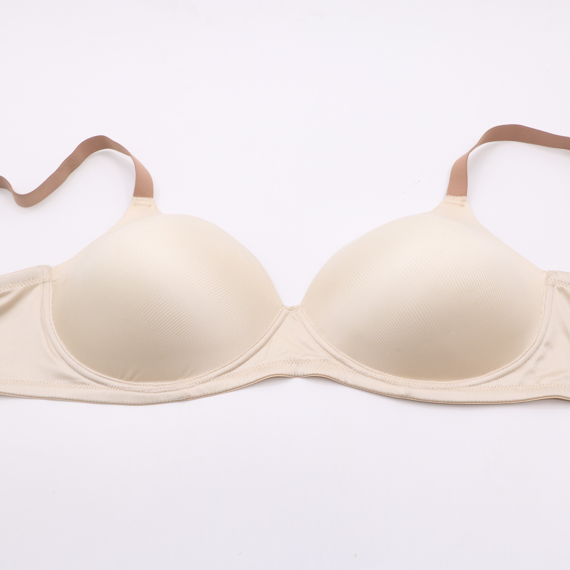 This beige seamless t-shirt bra is the ultimate in comfort and discretion. The seamless construction eliminates visible lines, while the molded cups provide a natural, rounded shape. Adjustable tan straps and a secure back closure make it ideal for everyday wear
