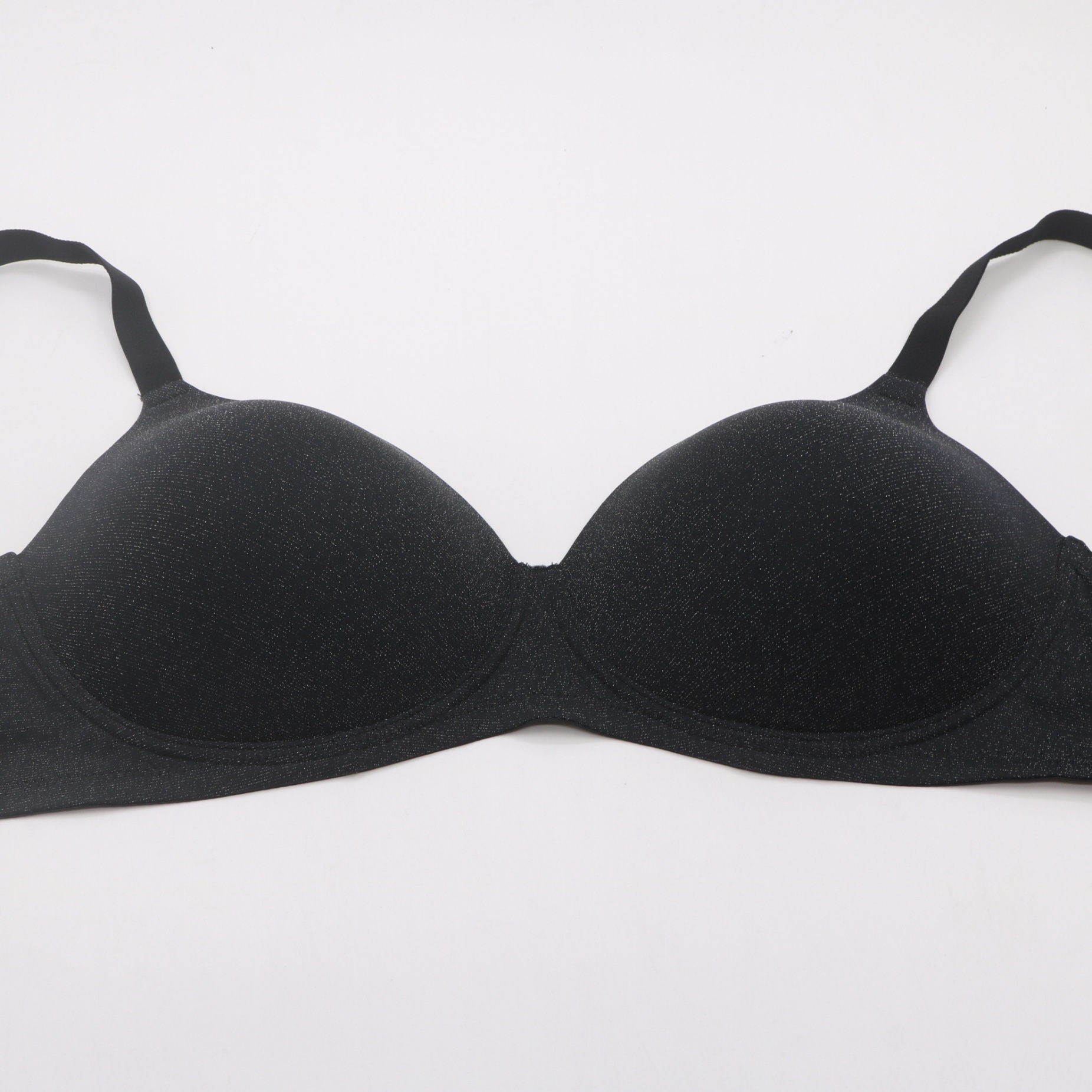 3997#Sparkle Seamless Underwire Bra, Black Glitter Push-Up Bra for Women