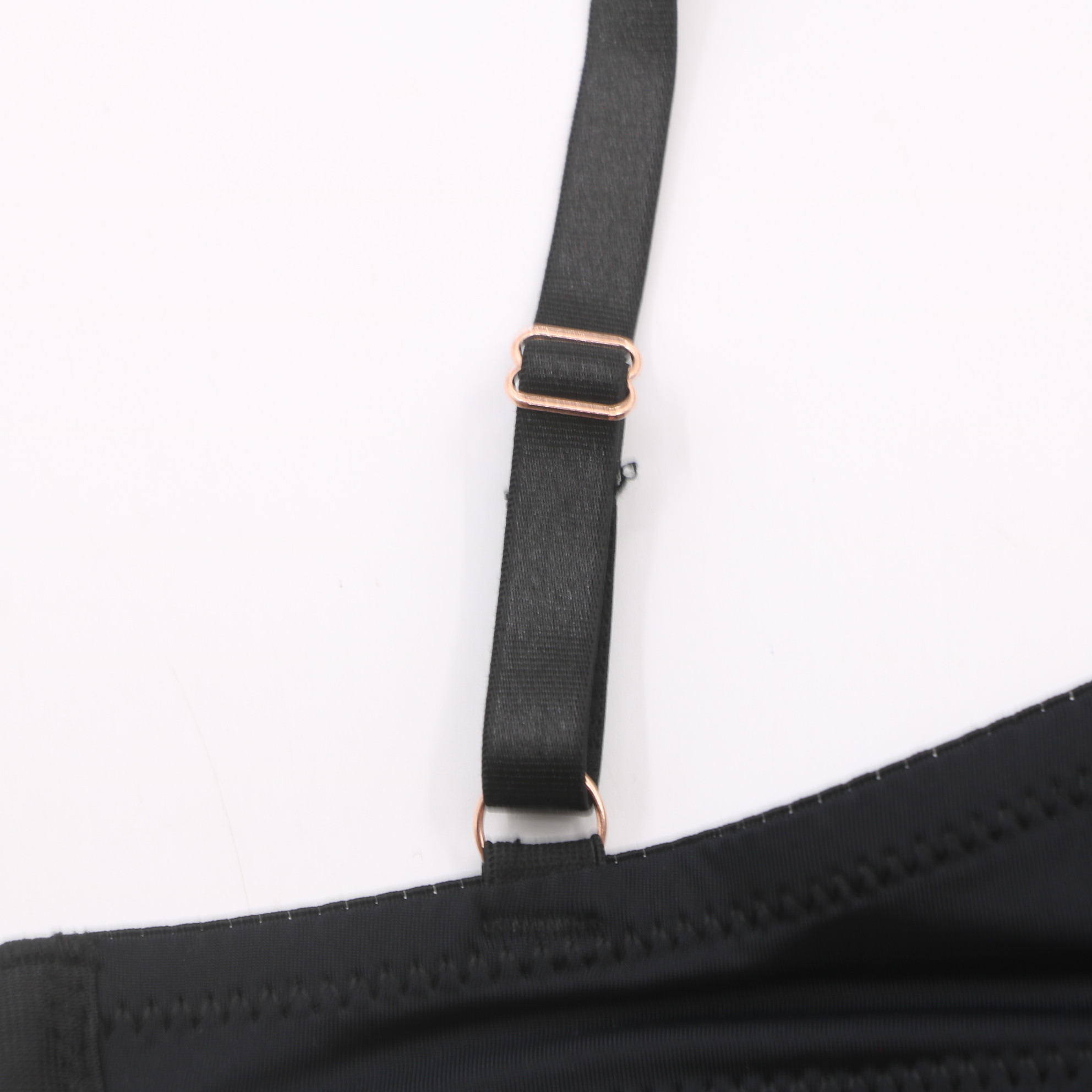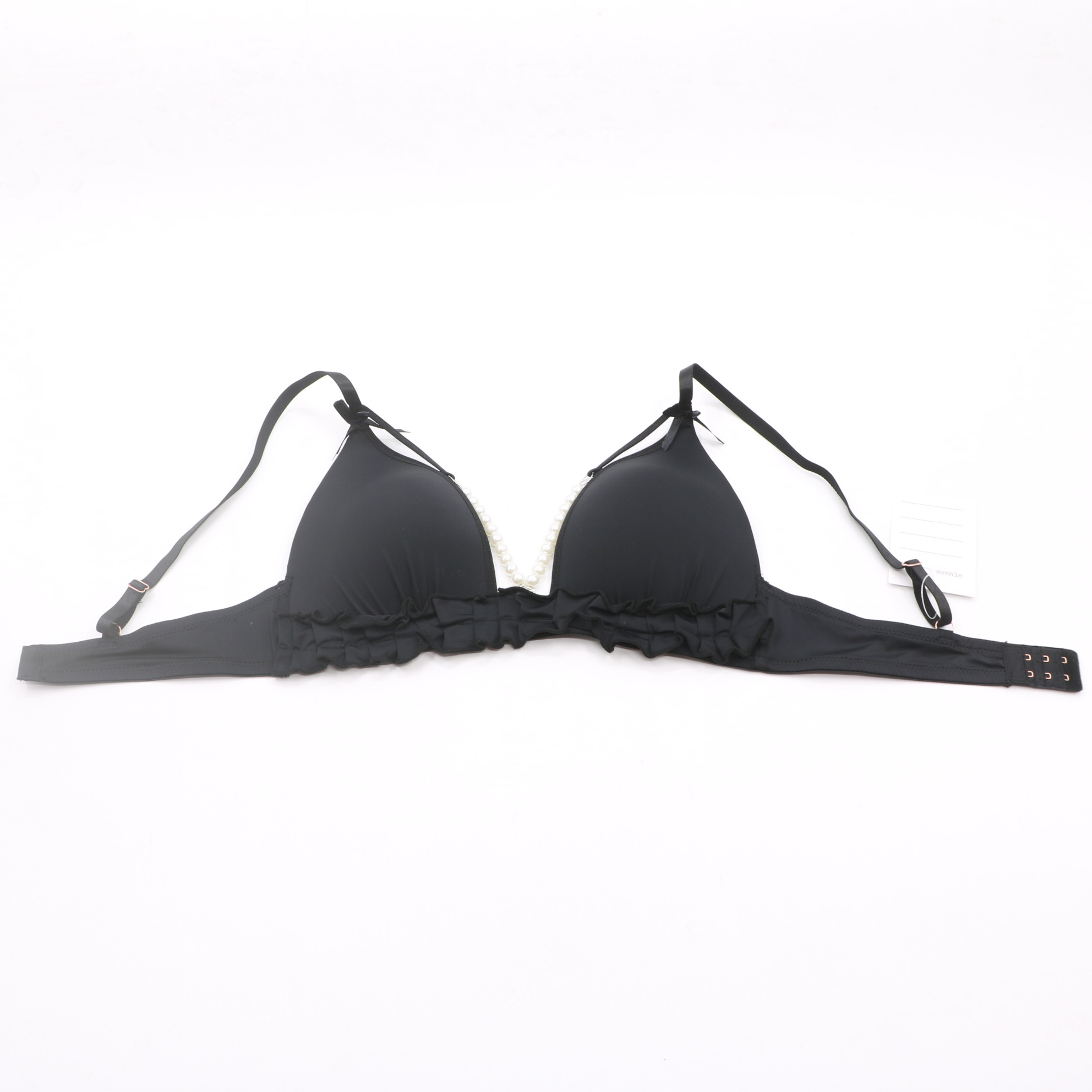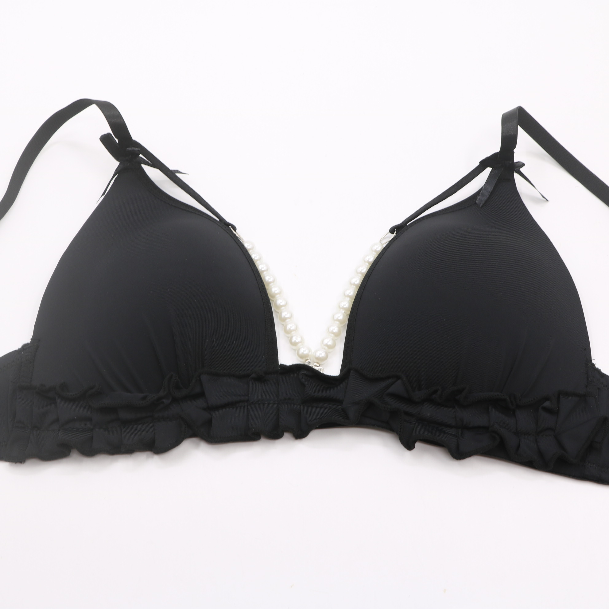 4062#Black Triangle Bra with Pearl Chain & Ruffle Trim