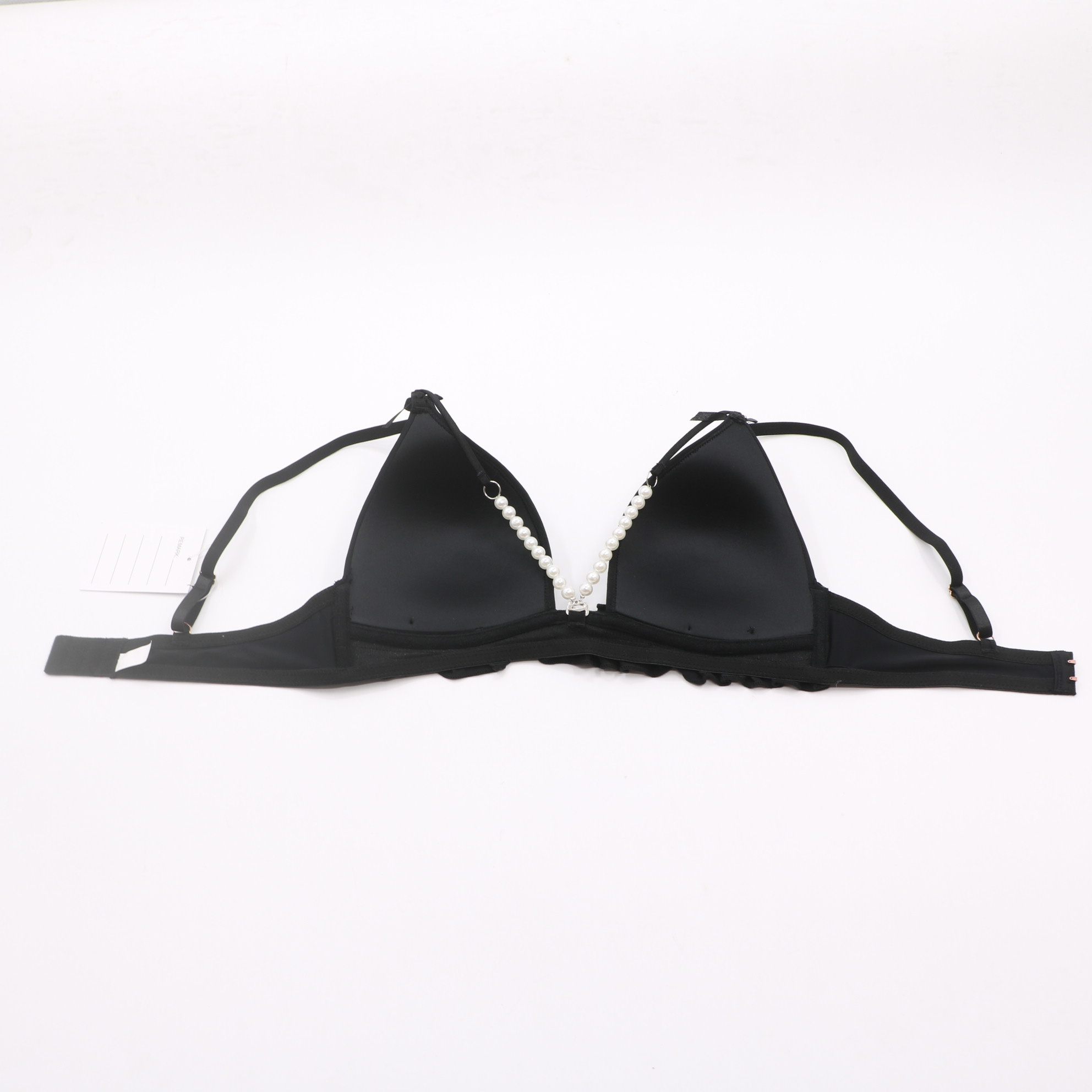 Products4062#Black Triangle Bra with Pearl Chain & Ruffle Trim