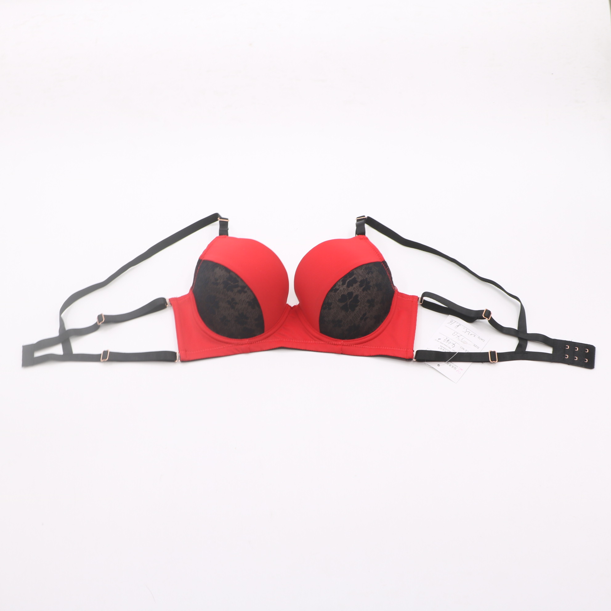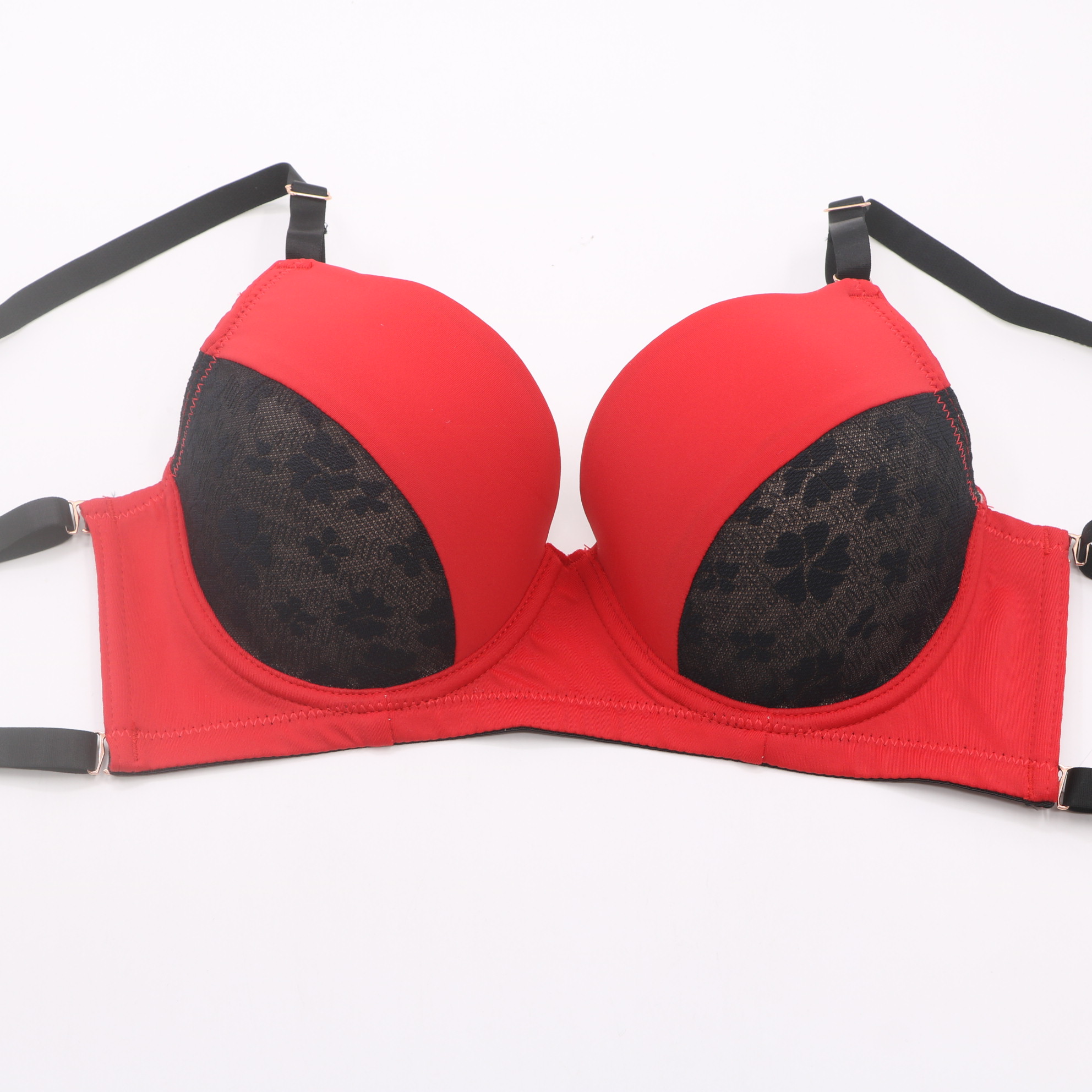 Products4088#Red & Black Lace Push-Up Bra with Rose Gold Hardware
