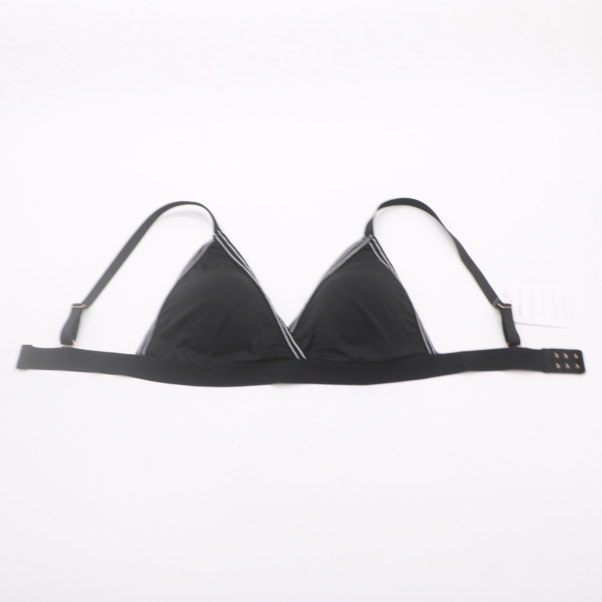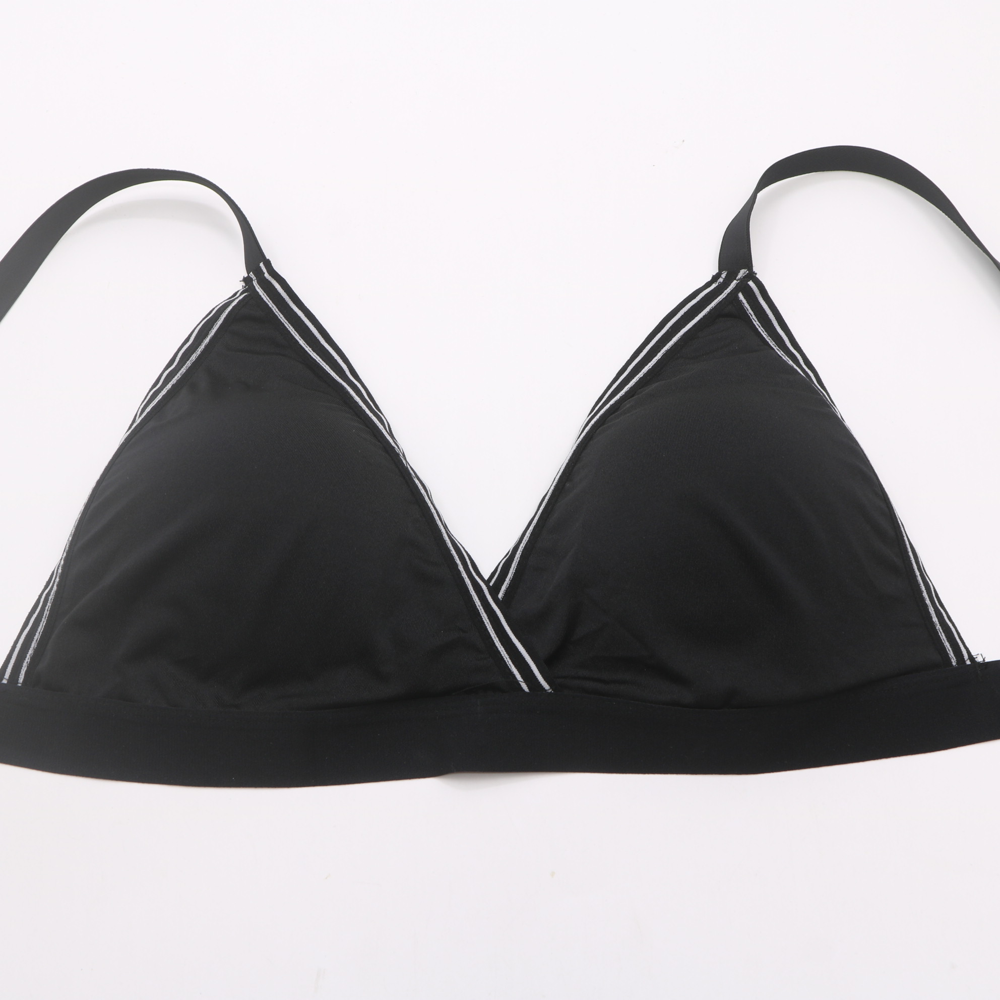 Lightly padded triangle cups, adjustable straps, and a secure hook-and-eye closure—perfect for casual, wire-free wear.