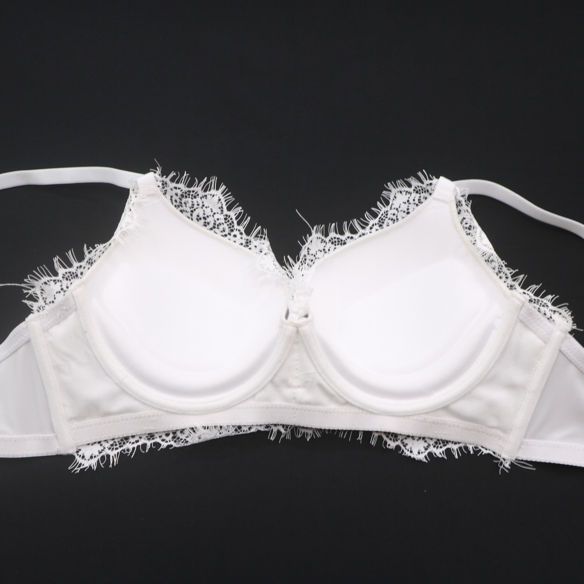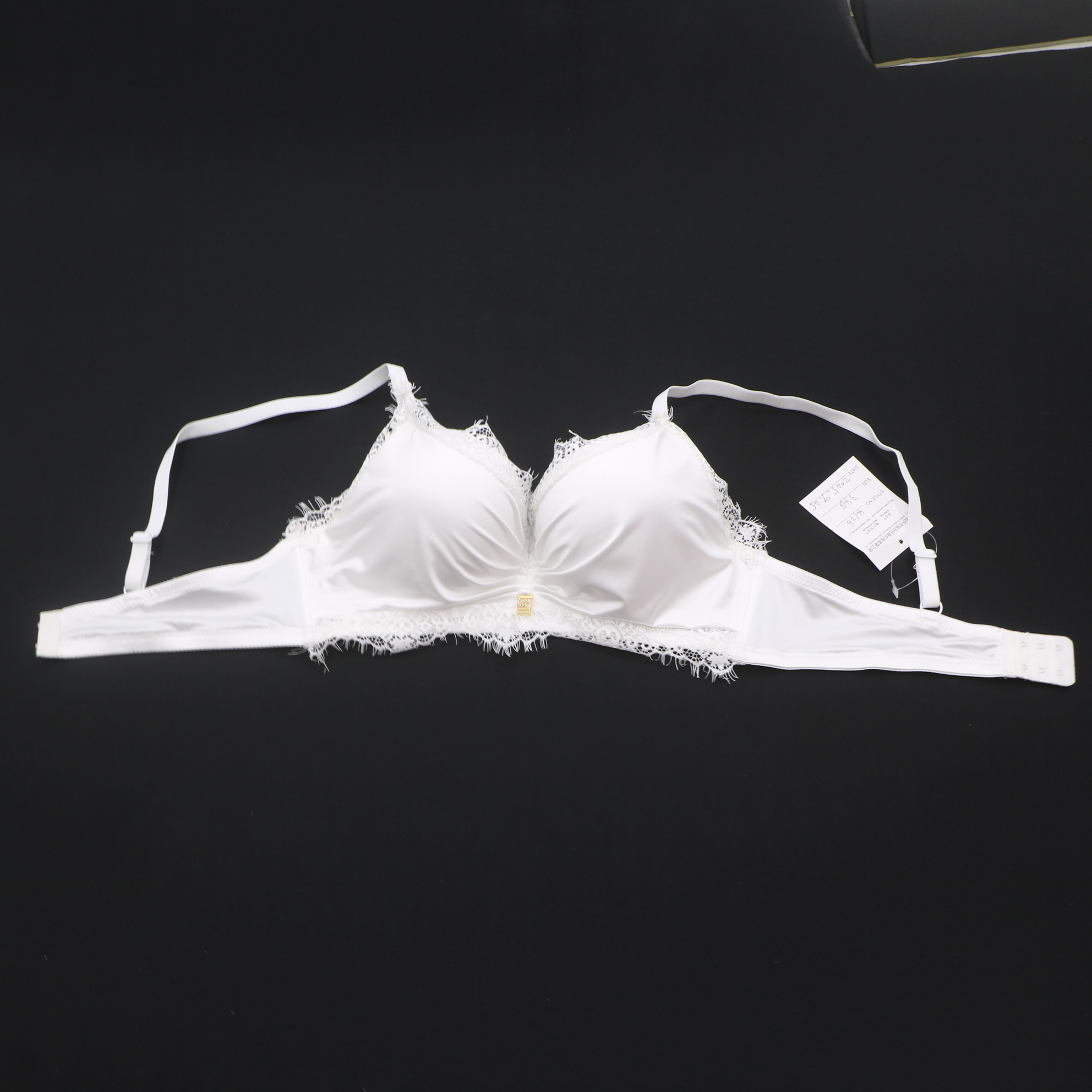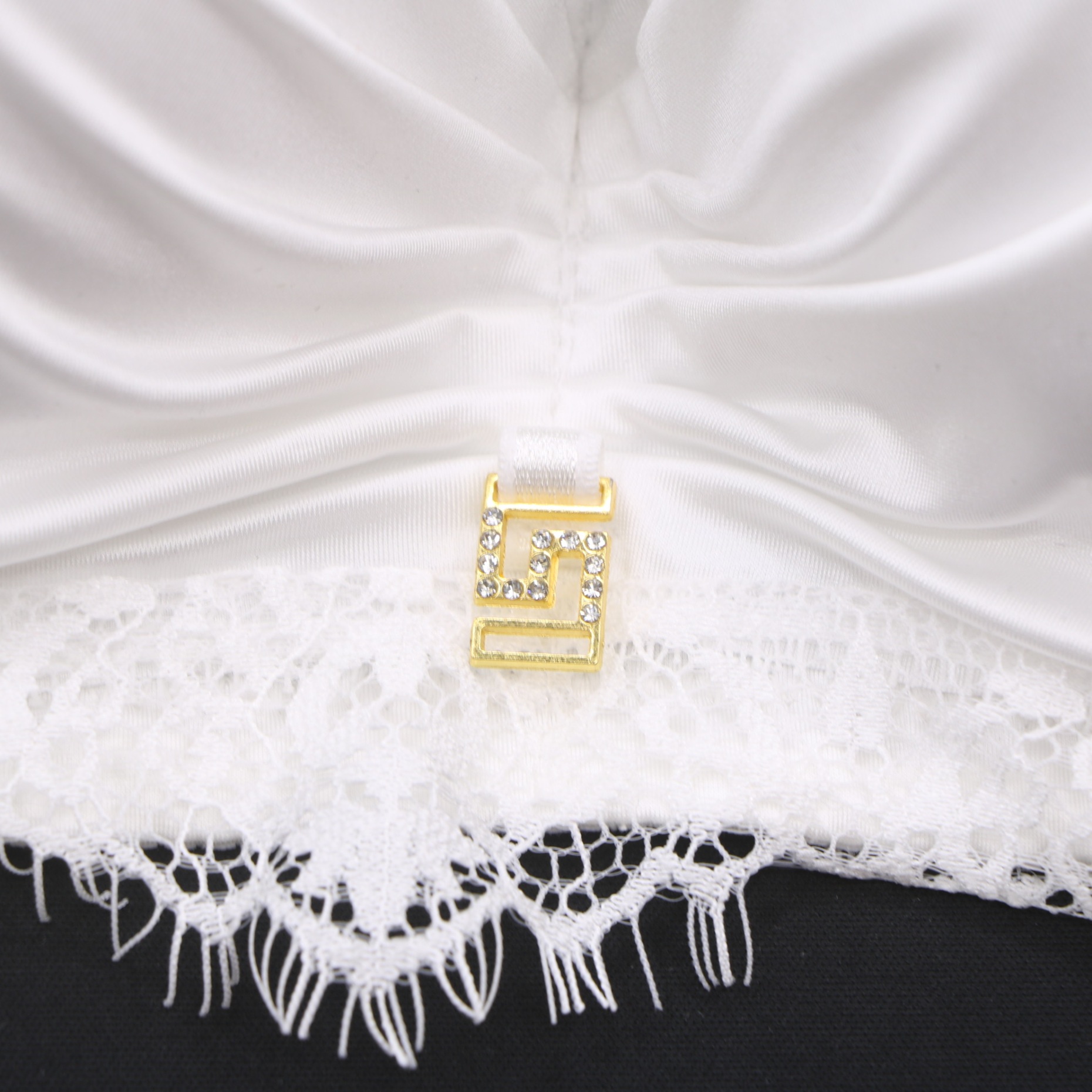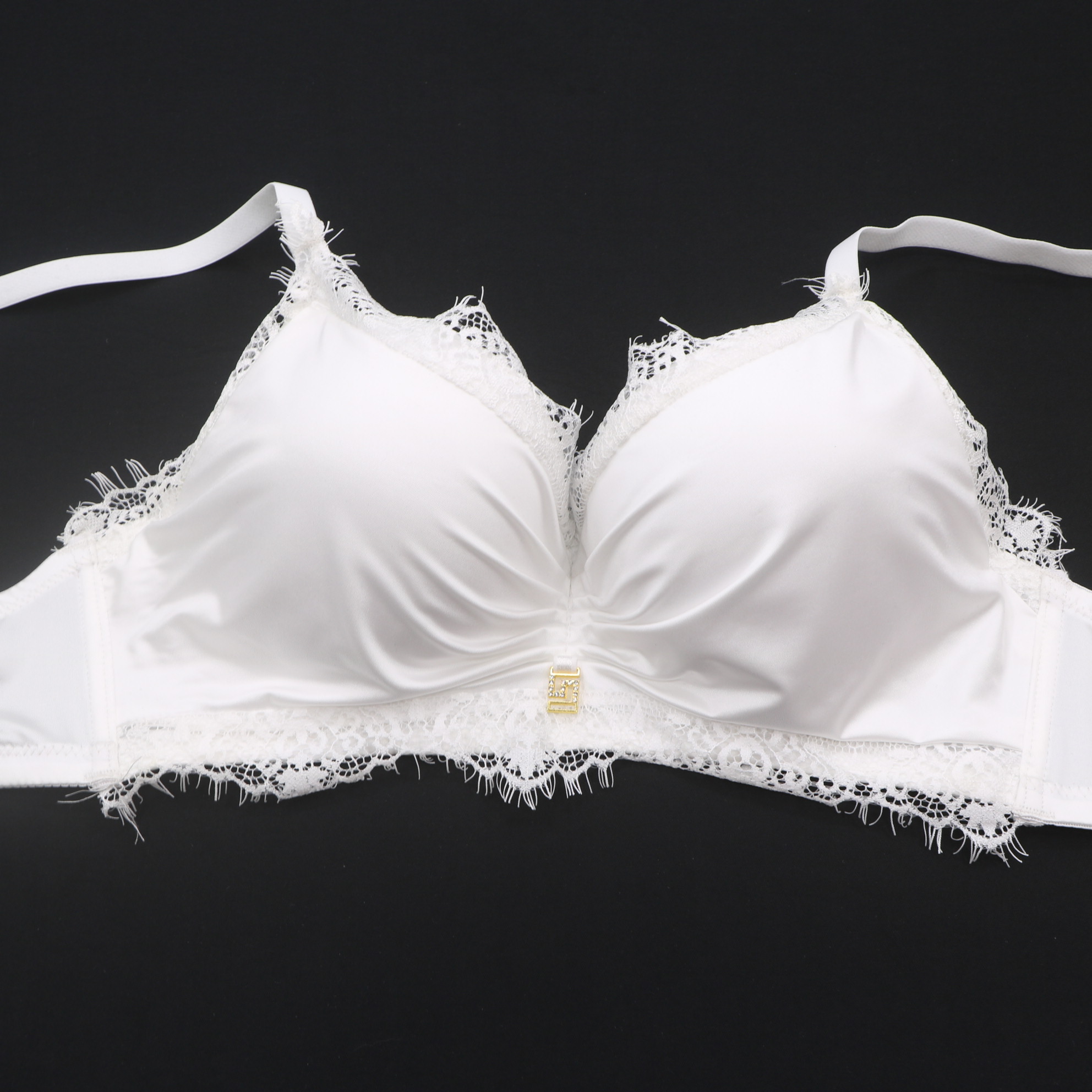 Elevate your lingerie collection with this luxurious white satin bra. The intricate lace detailing and eye-catching gold hardware add a touch of glamour, while the soft fabric and adjustable straps offer all-day comfort.