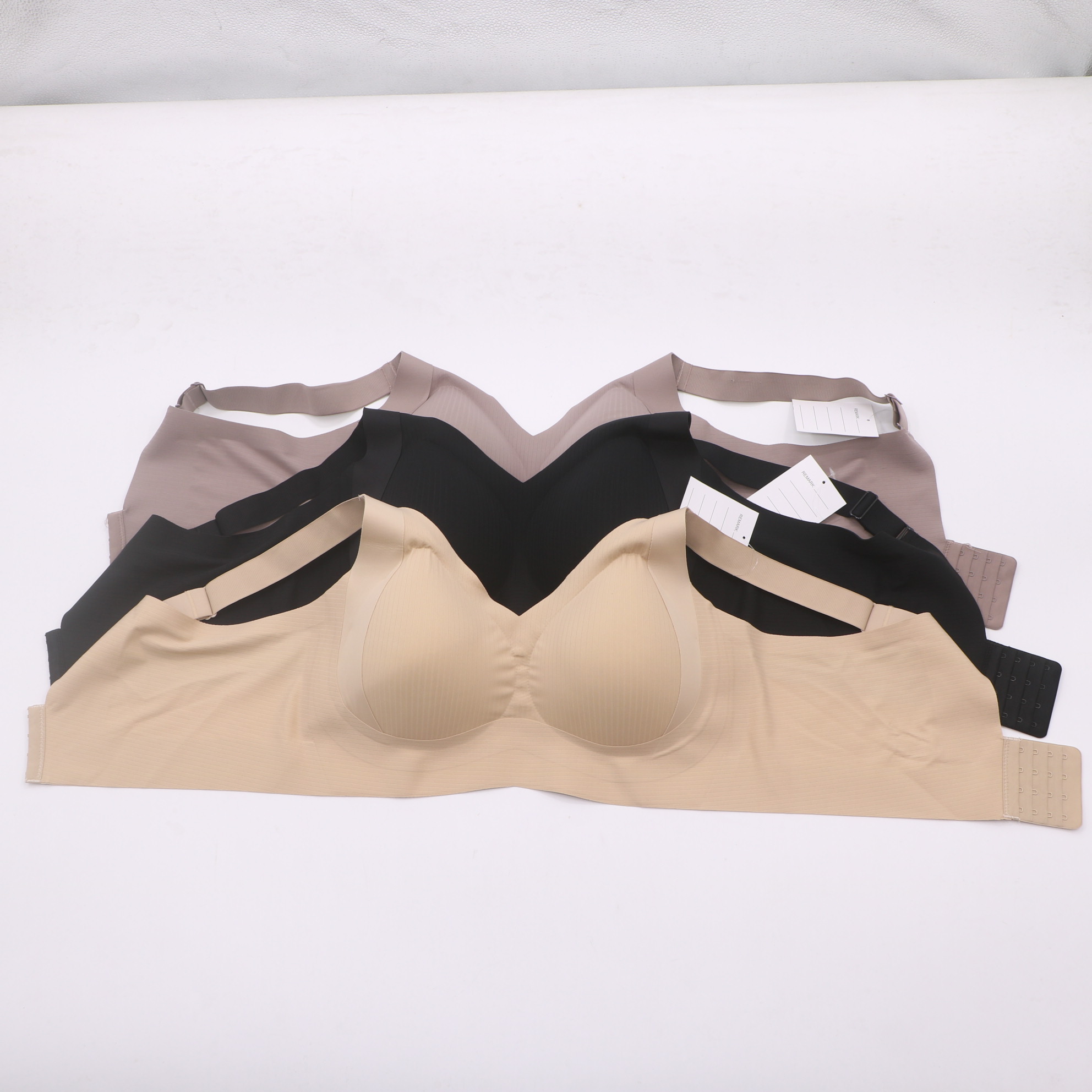 This seamless, wirefree bra offers all-day comfort with a soft, stretchy fabric and molded cups for natural shaping and support. The adjustable straps and multiple back hook closures ensure a personalized fit, while the smooth, tag-free design disappears under clothing for a sleek, invisible look.