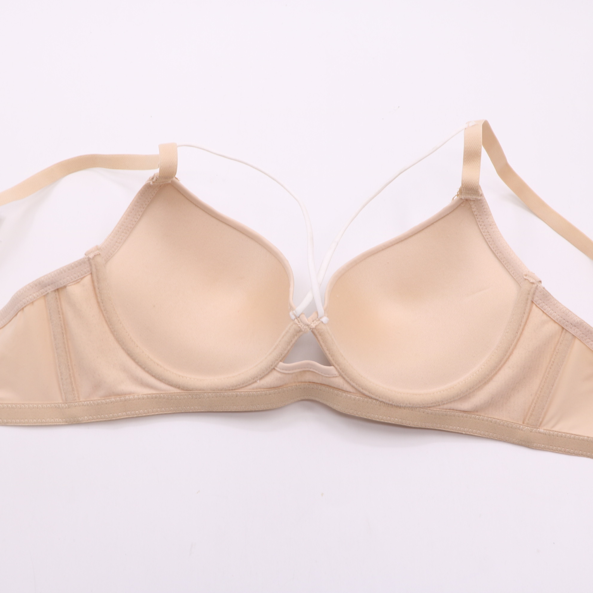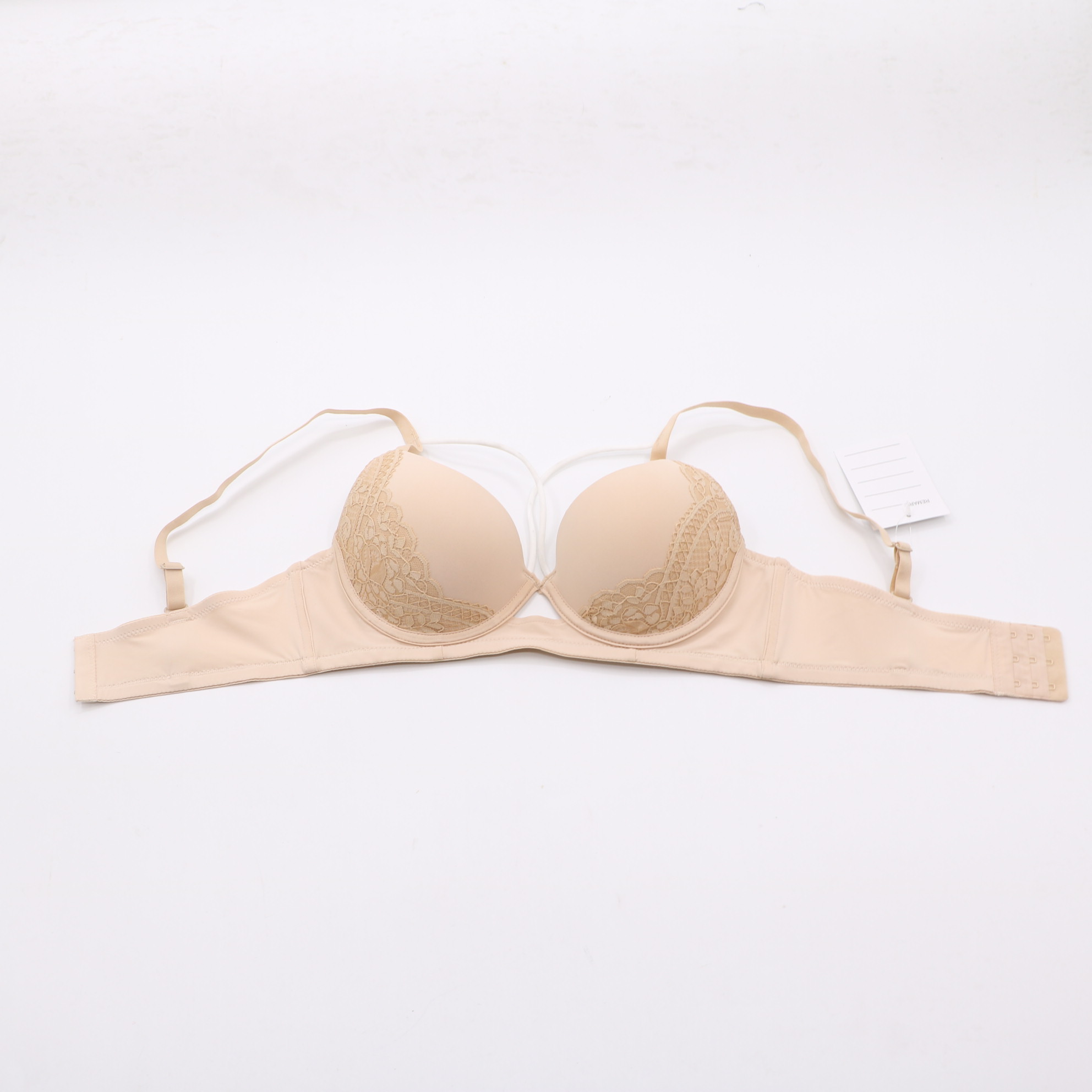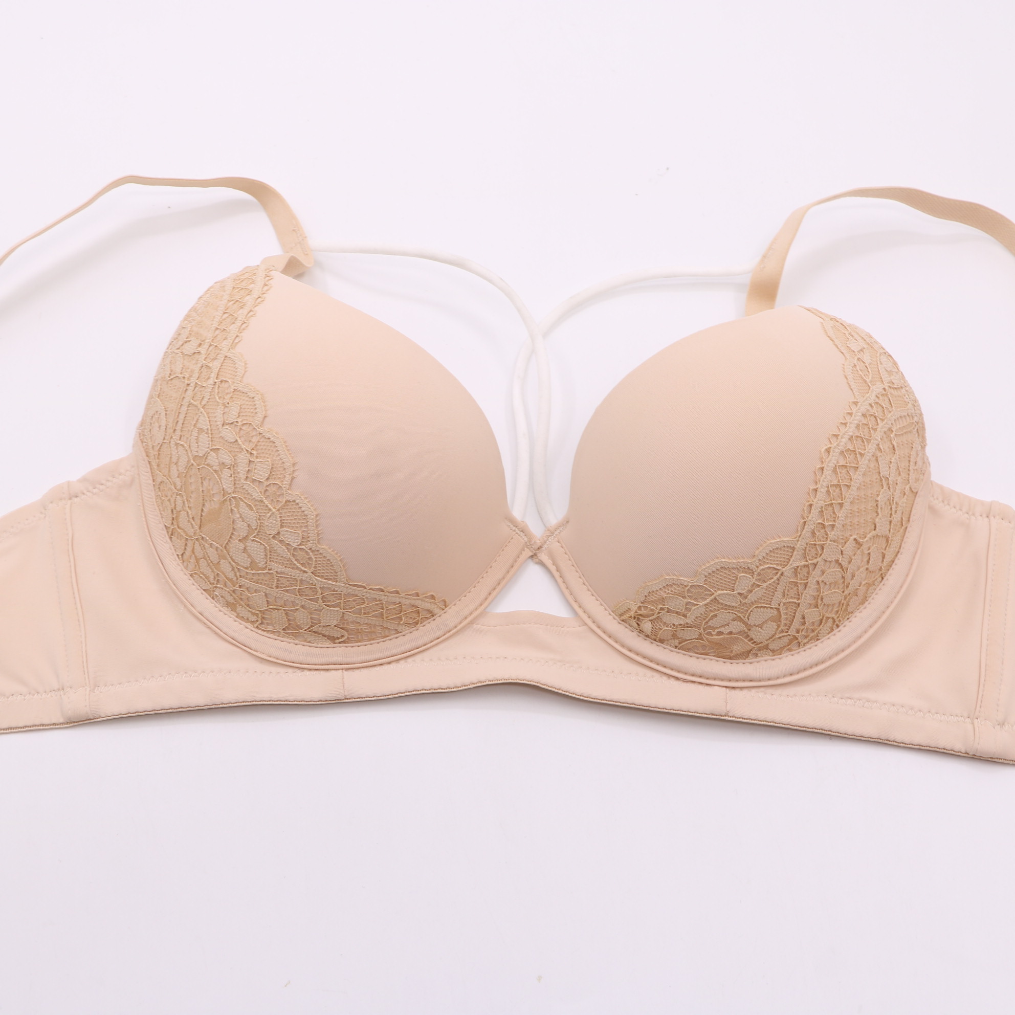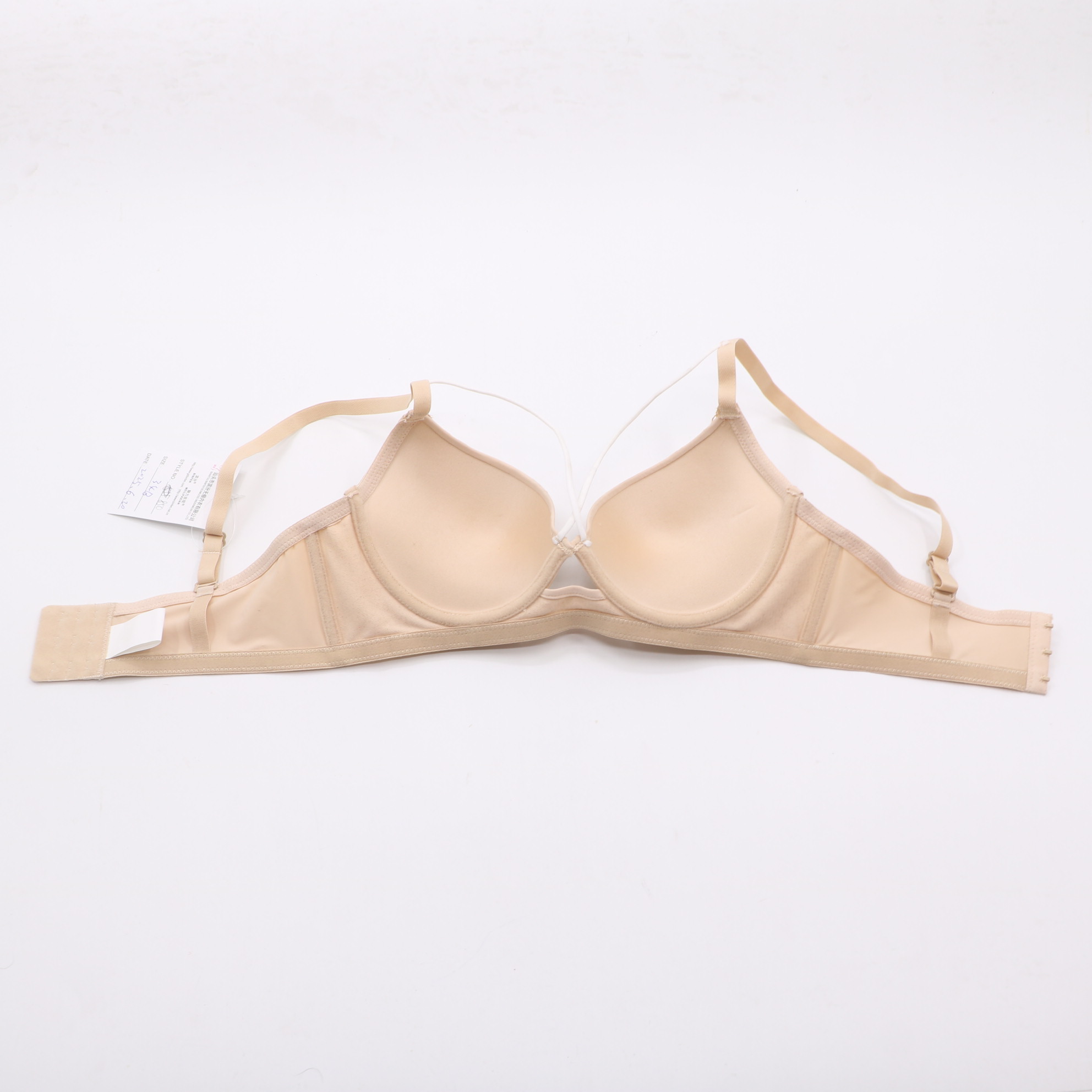 This nude bra features delicate floral lace trim along the molded cups for a touch of elegance. It comes with both adjustable nude straps and clear, invisible straps, making it perfect for low-cut or strapless outfits. The smooth fabric and 3-row back closure ensure a comfortable, secure fit, while the padded cups provide a natural, flattering shape.