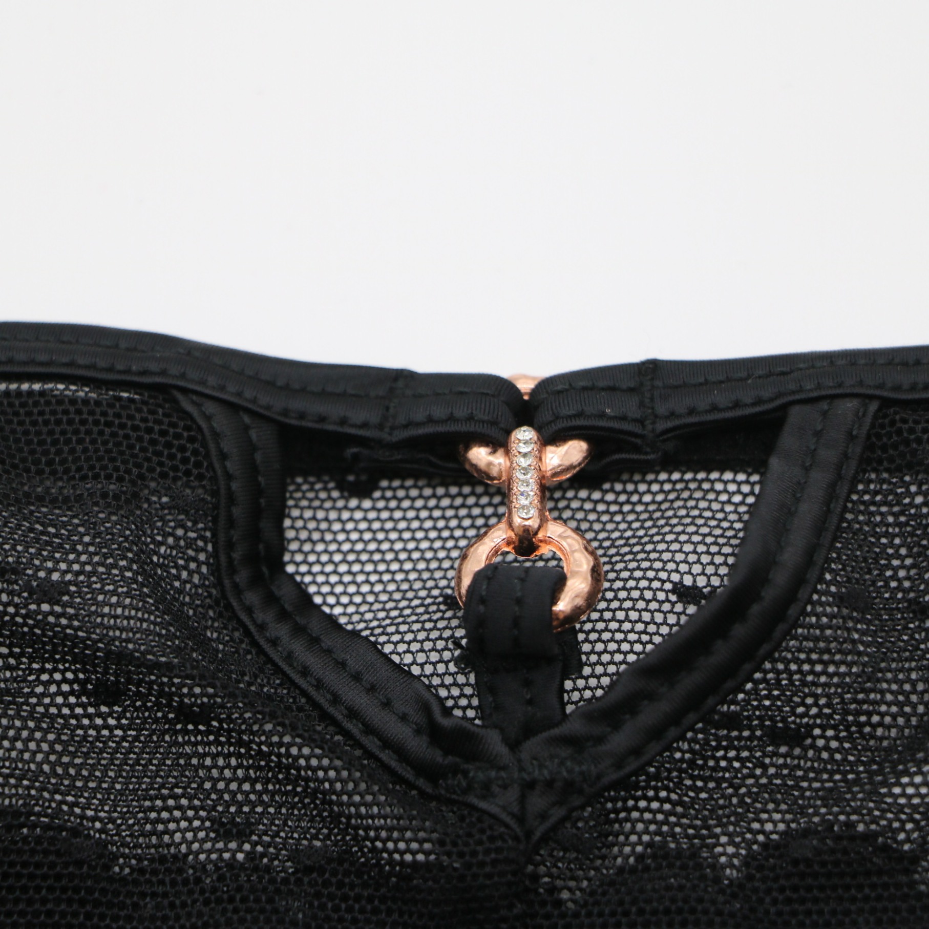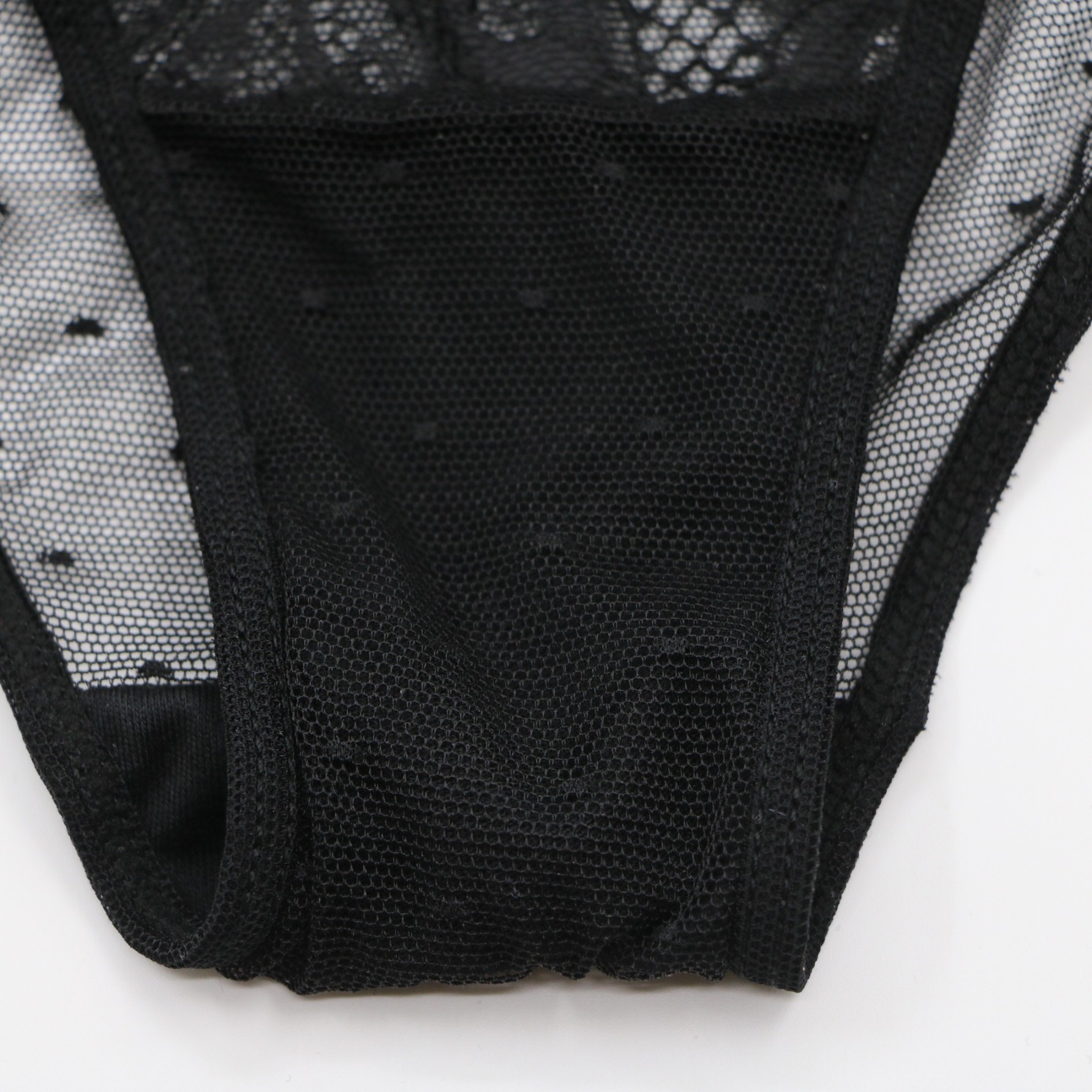 Breathable dot mesh, delicate floral lace detailing, and a decorative front hardware—ideal for all-day comfort and allure.
