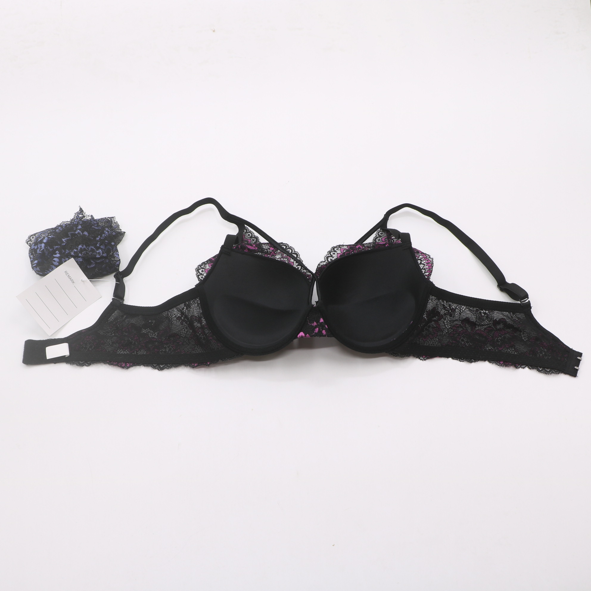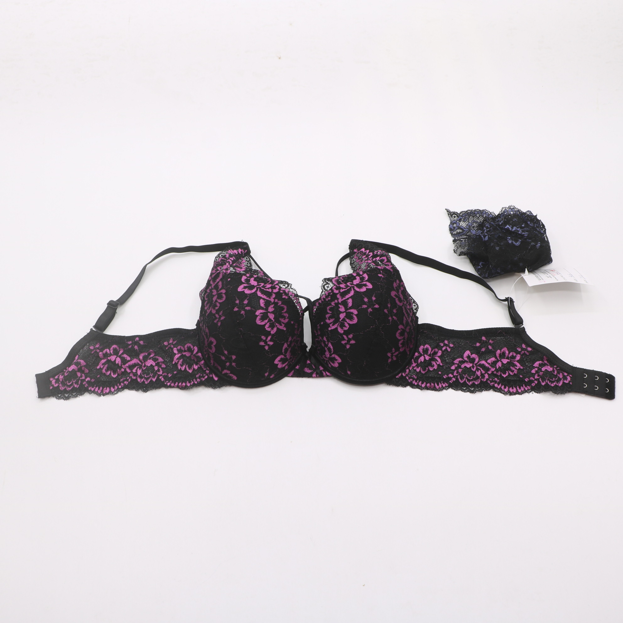 Products90937#Black & Pink Floral Lace Push-Up Bra