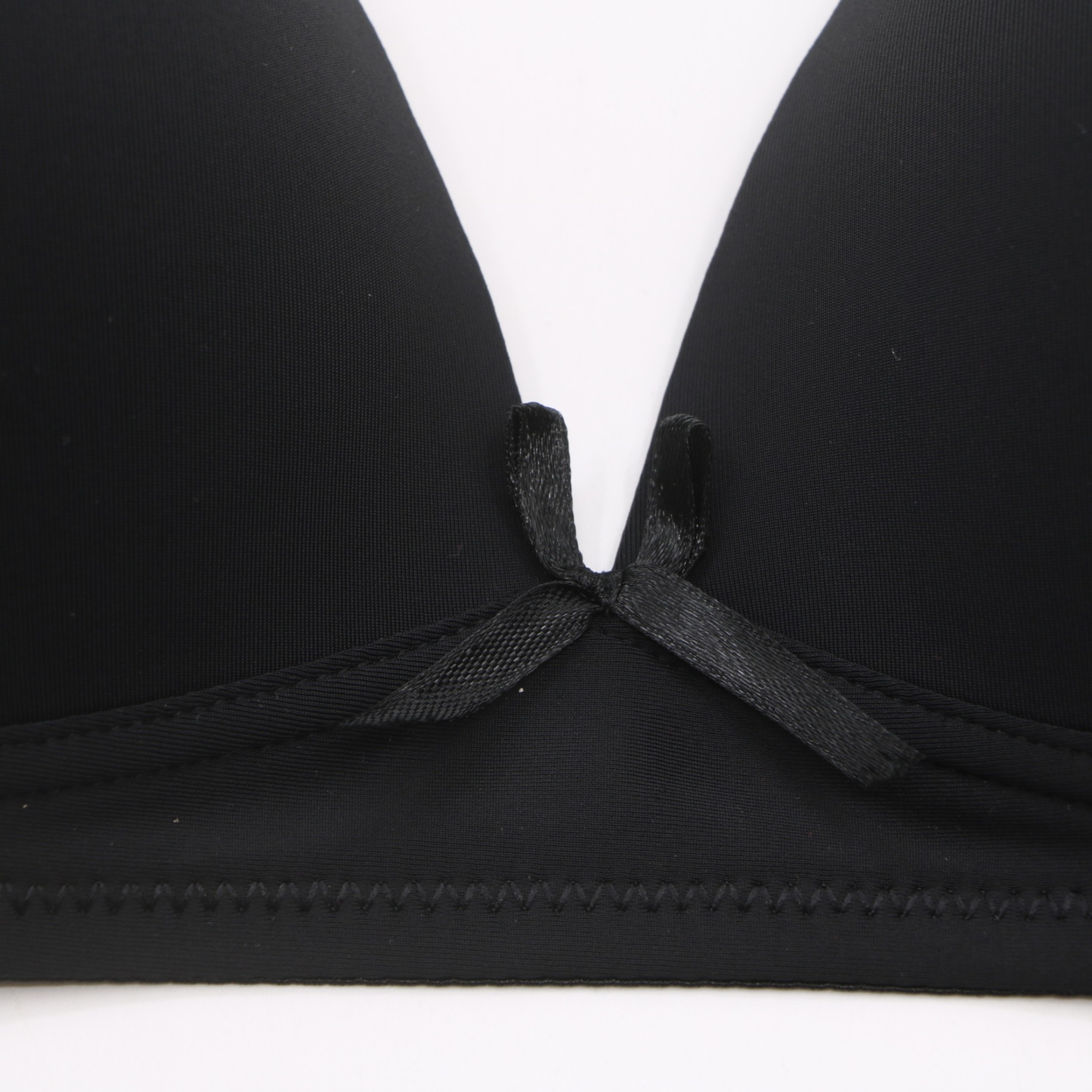 Products90940#Black Wireless Plunge T-Shirt Bra with Bow Detail