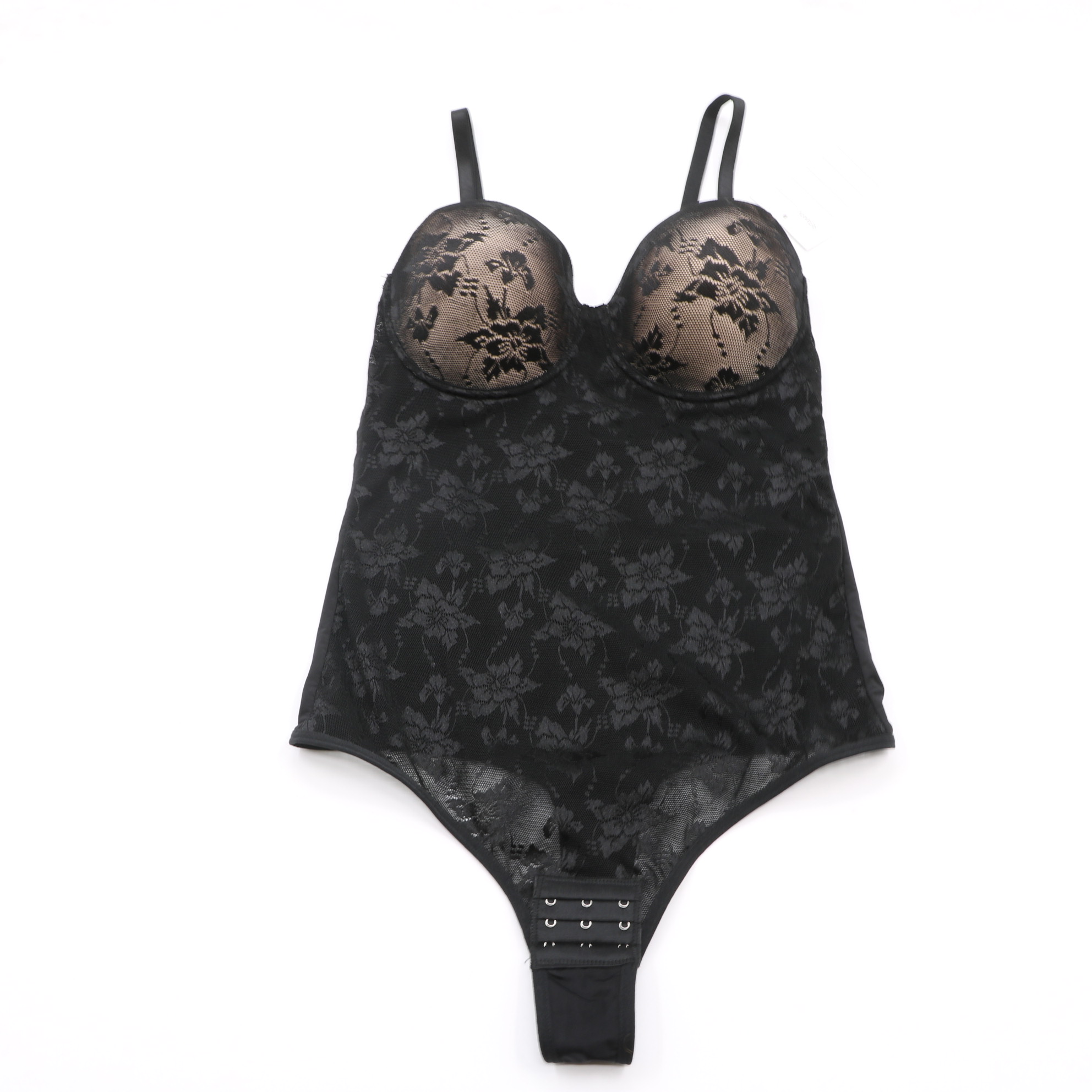 ProductsB20985#Sheer Lace Thong Shapewear Bodysuit with Built-in Underwire Bra, Tummy Control Shaper