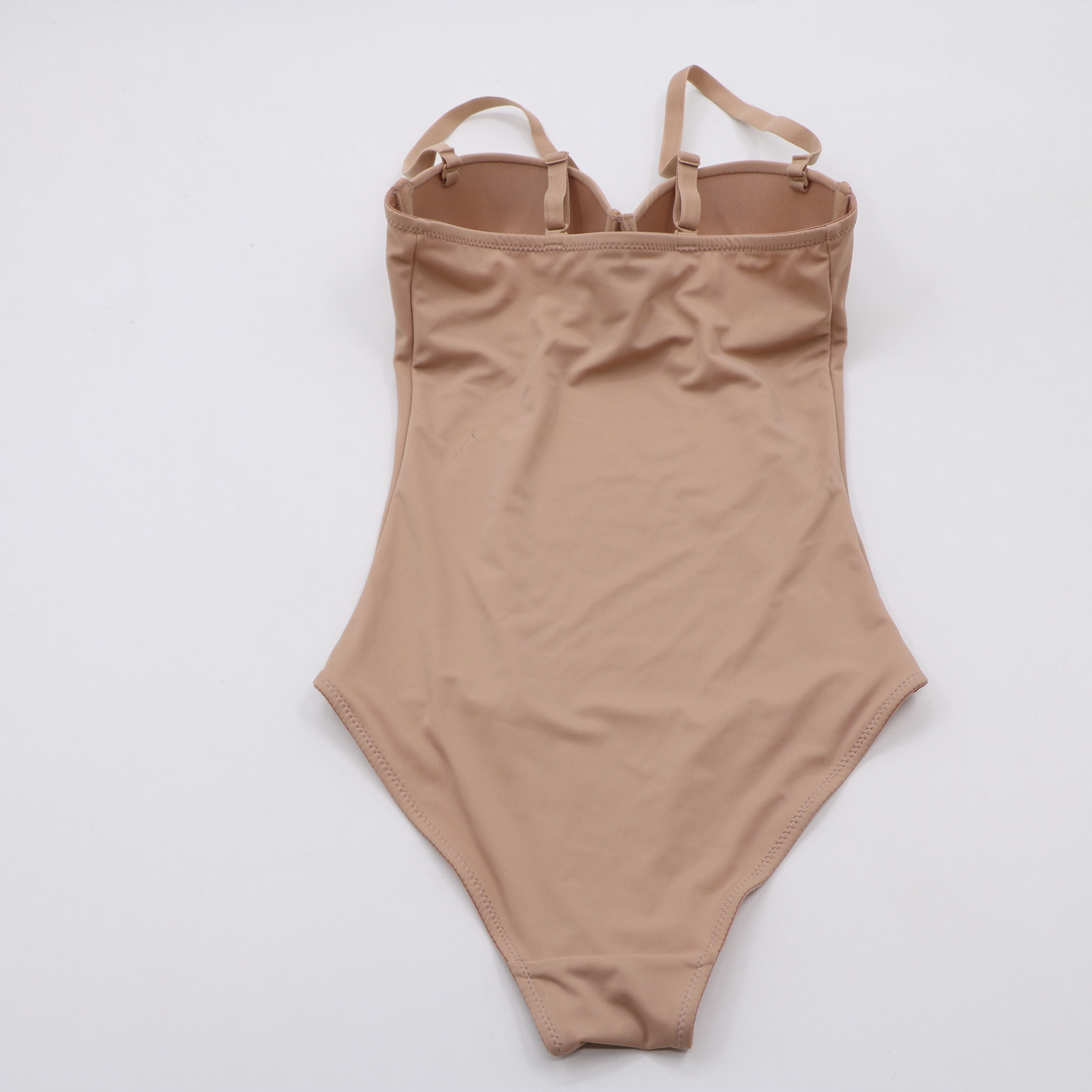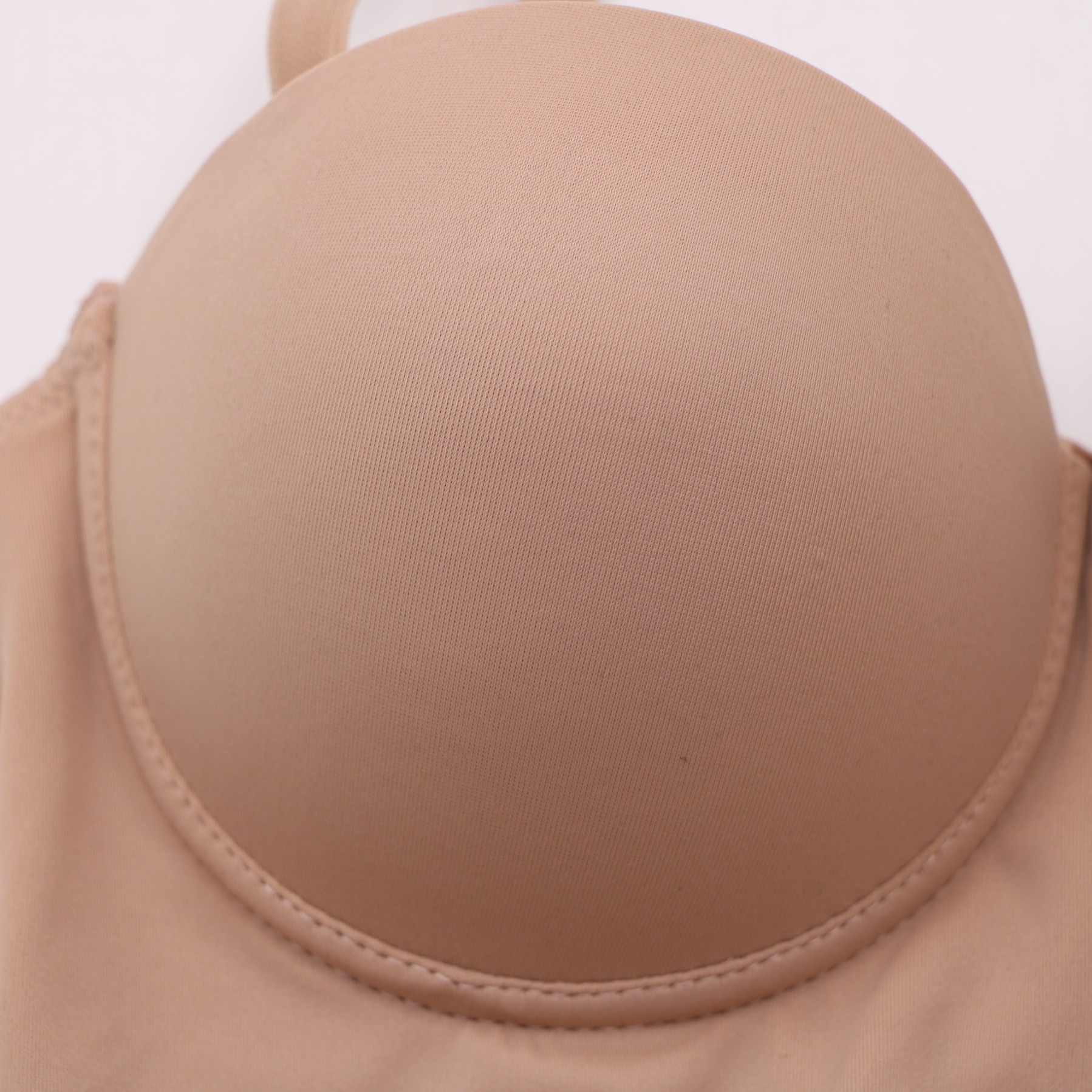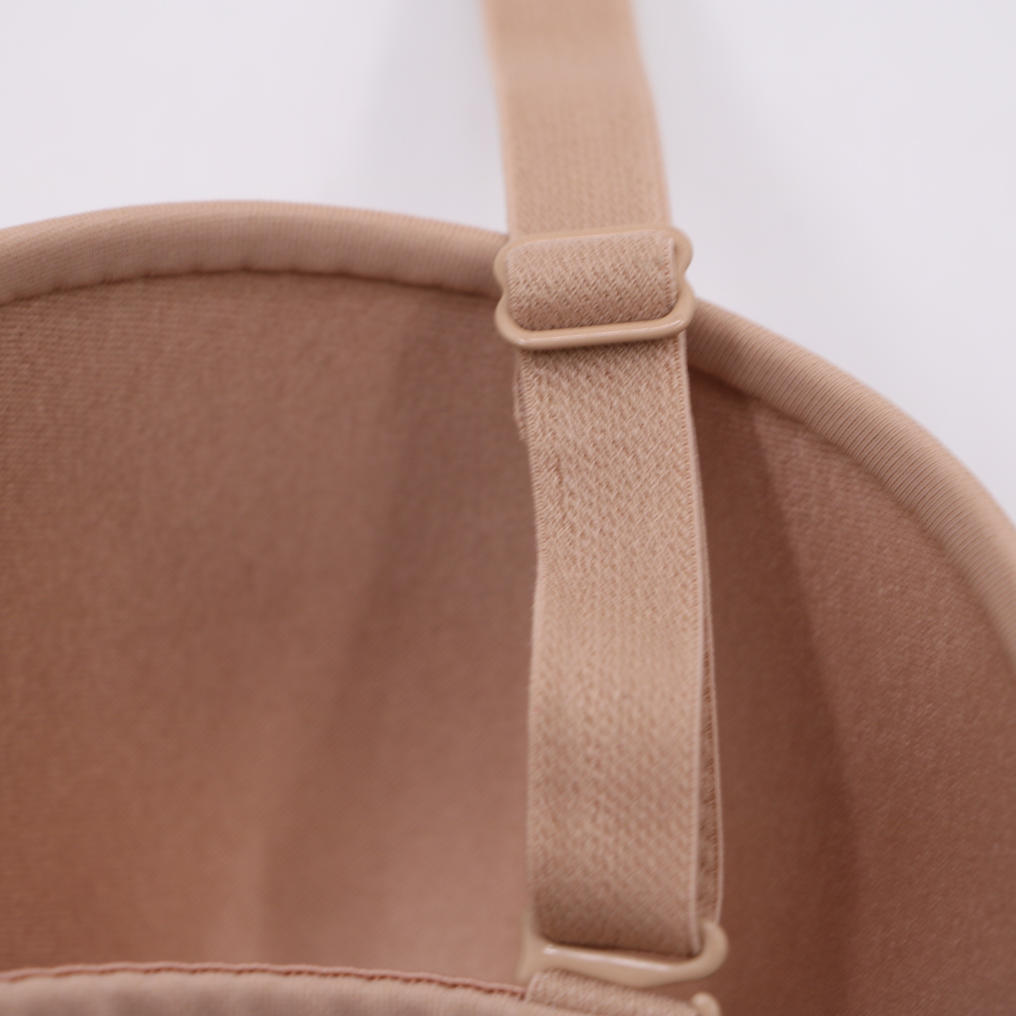 Molded cups for lift, adjustable straps, and snap-button closure. Soft stretch fabric for a smooth silhouette and all-day comfort.