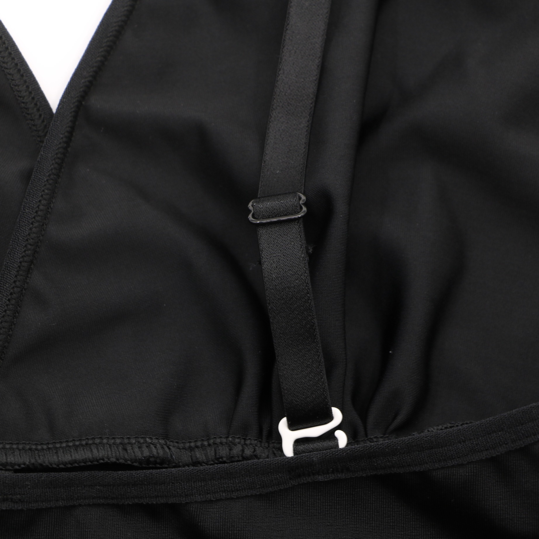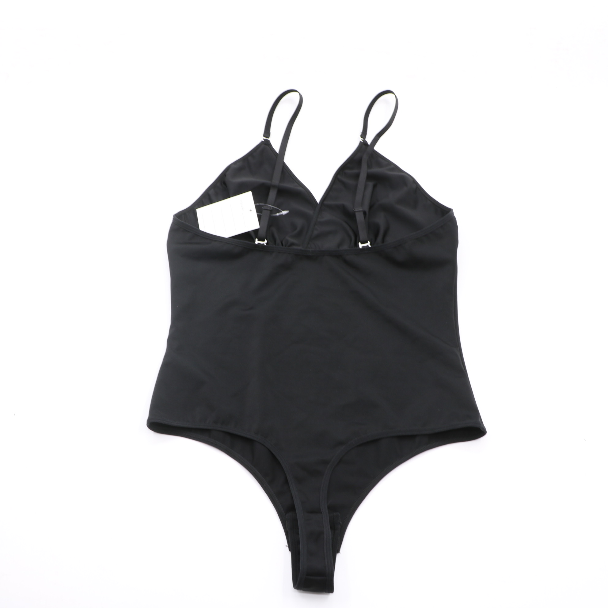 This black seamless V-neck bodysuit delivers invisible, all-day comfort under any outfit. It features adjustable straps for a customized fit, gentle tummy control, and a 2-row crotch snap closure for easy on/off. The ultra-soft, stretchy fabric moves with your body, creating a smooth, snatched silhouette perfect for everyday wear.