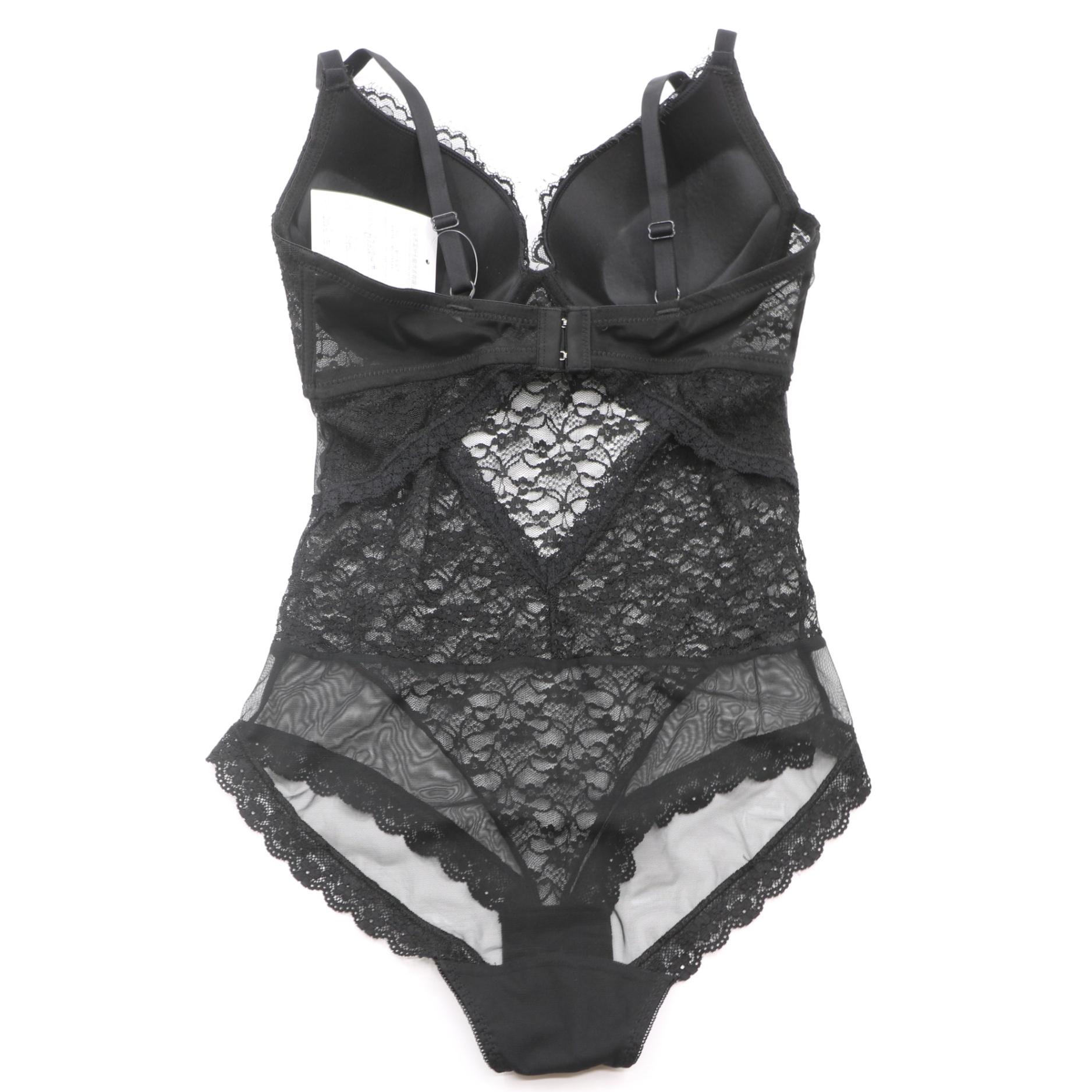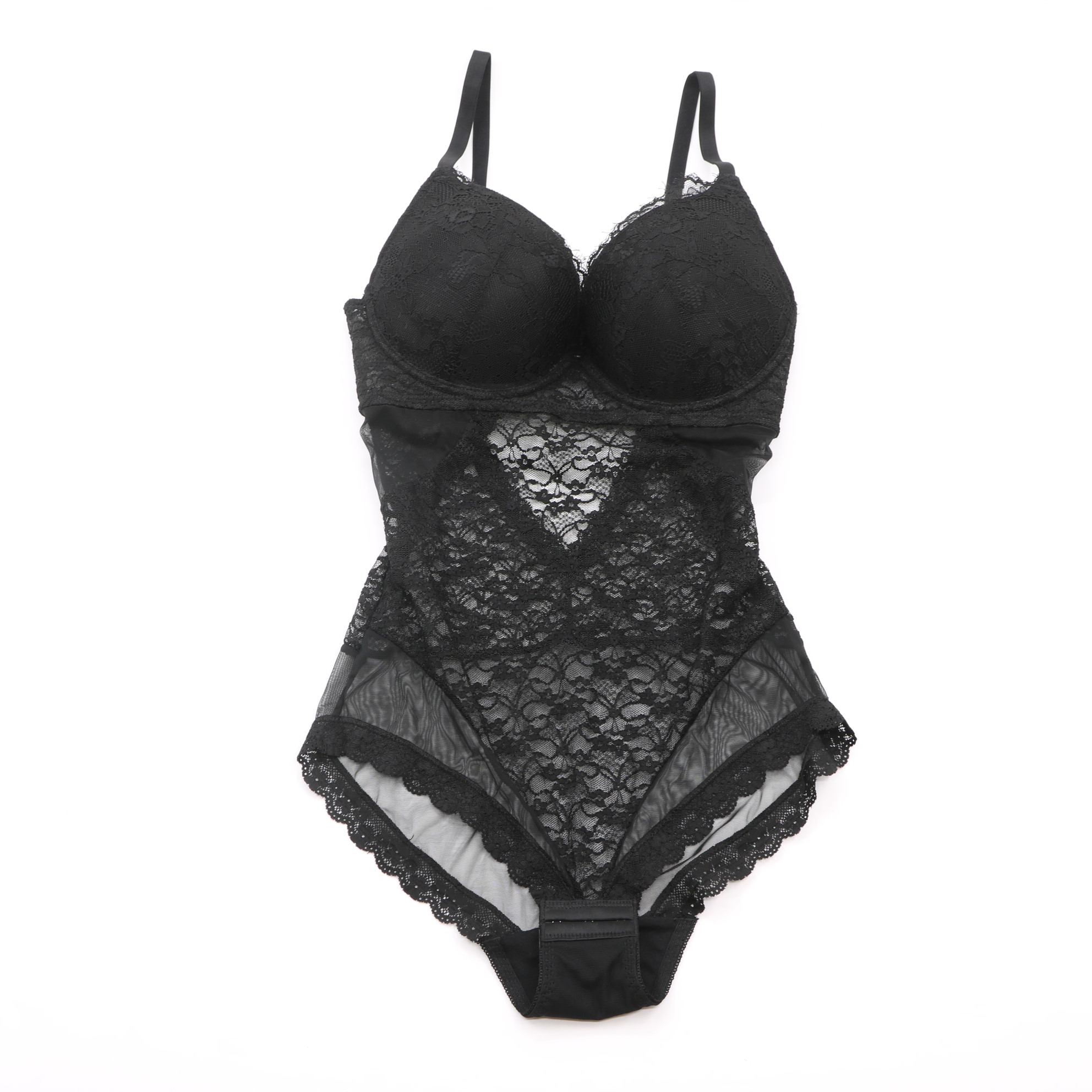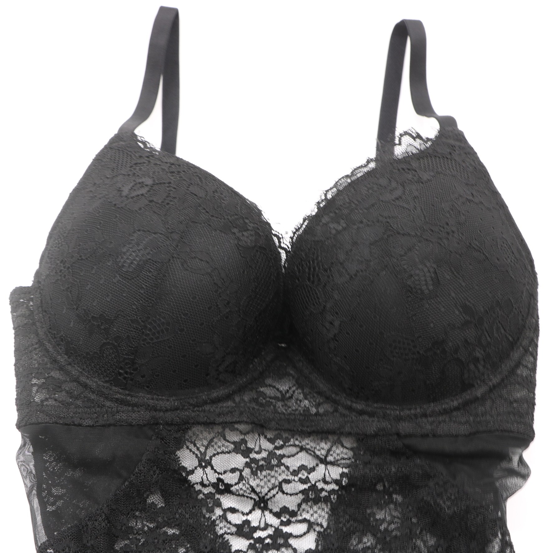 ProductsB73024# V-Neck Lace Shapewear Bodysuit with Built-in Underwire Bra, Tummy Control Shaper