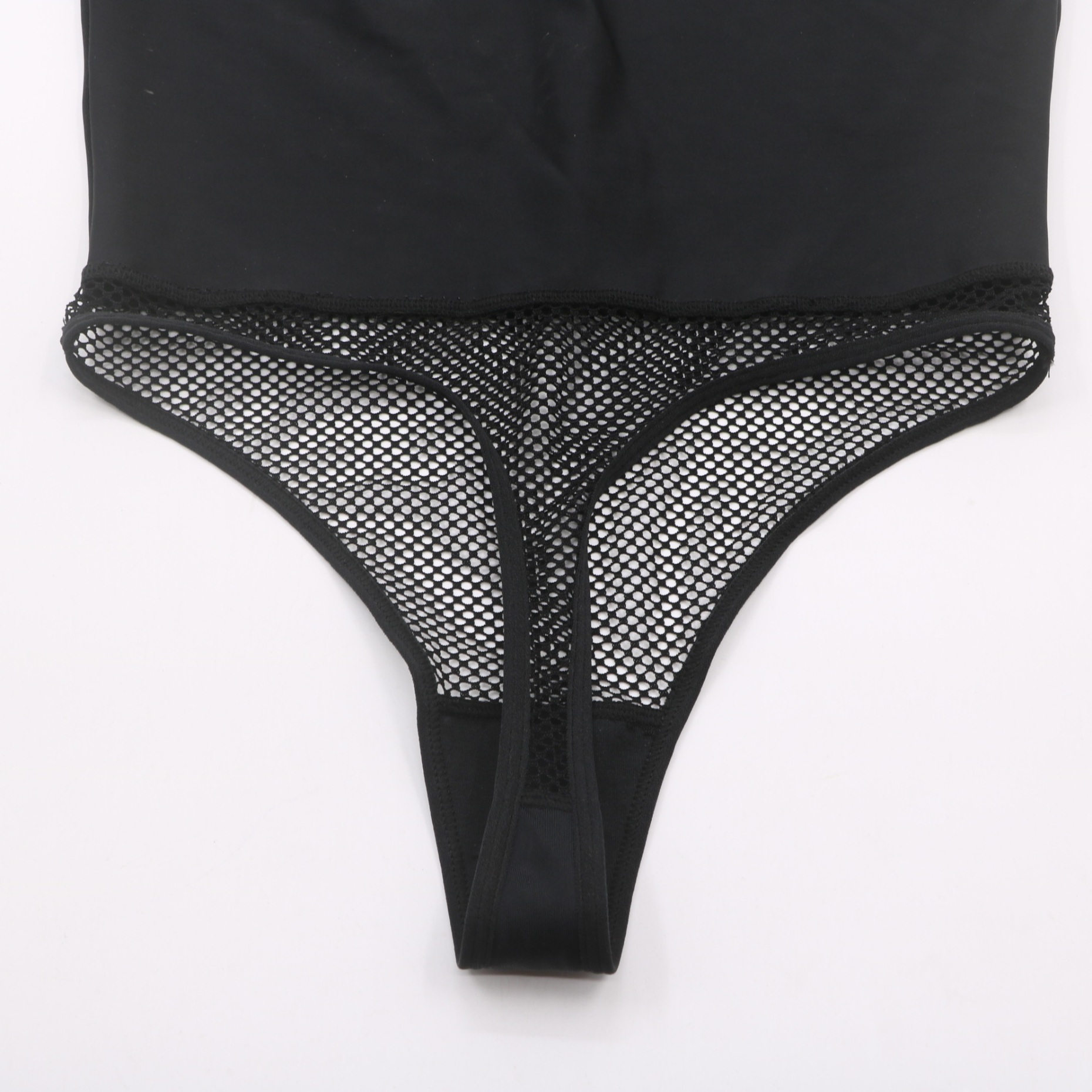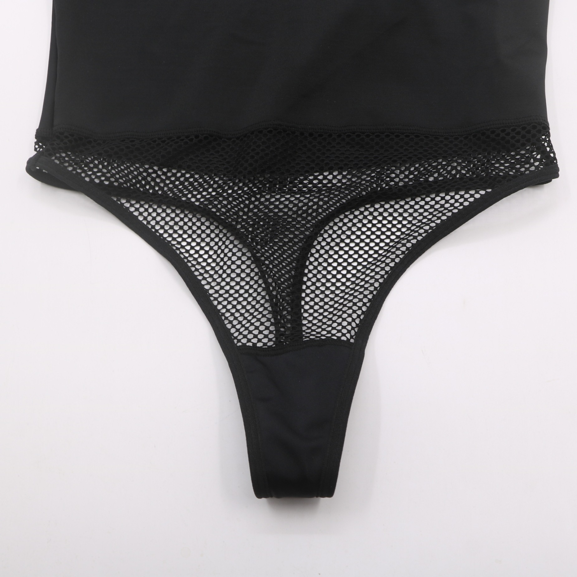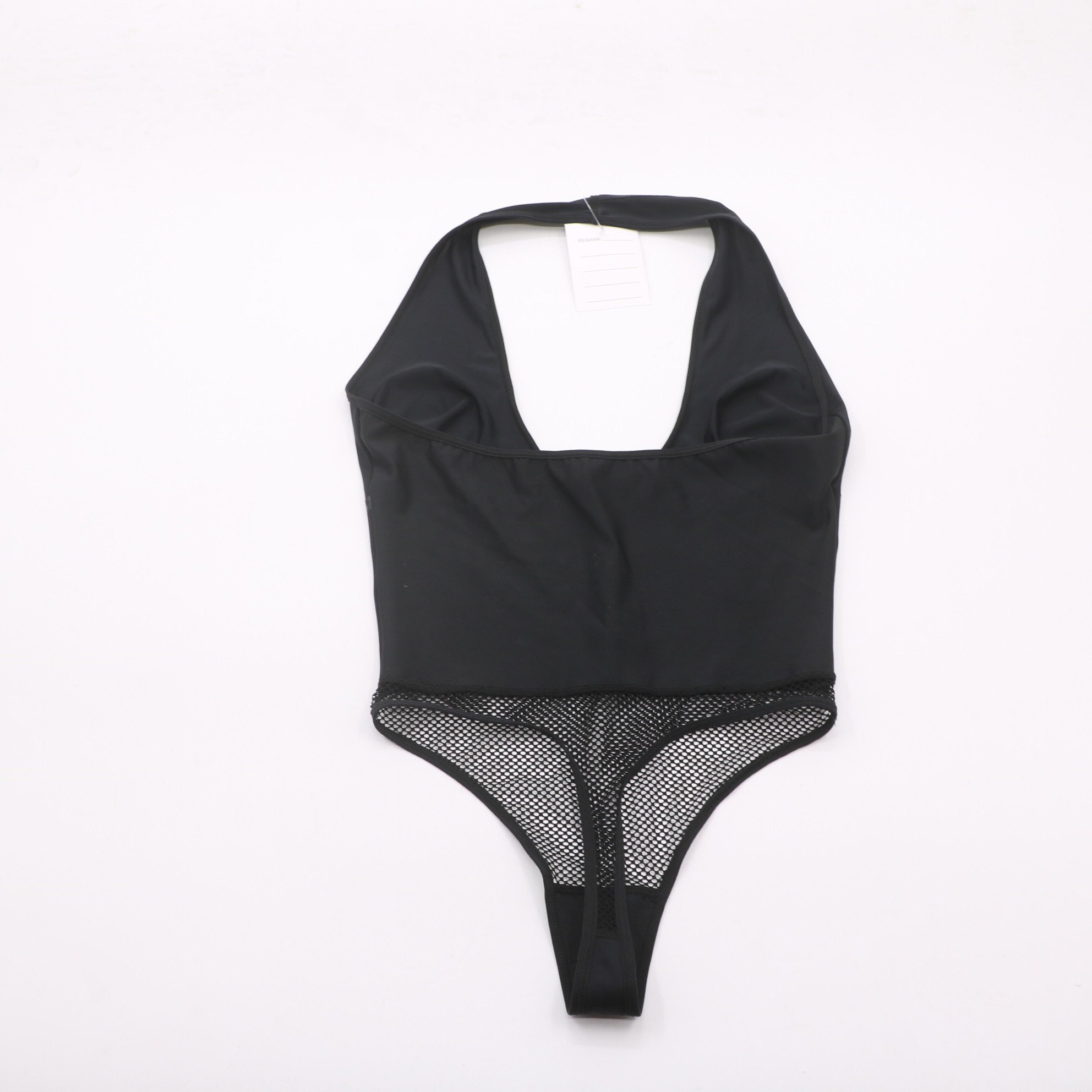 This sleek black halter bodysuit combines comfort and allure. Made from ultra-soft, seamless fabric, it features a supportive halter neckline, a sheer fishnet mesh panel for a seductive look, and a thong cut to eliminate visible lines under clothing. The high-quality, stretchy material ensures a perfect fit for all body types, making it ideal for everyday wear or special intimate moments.