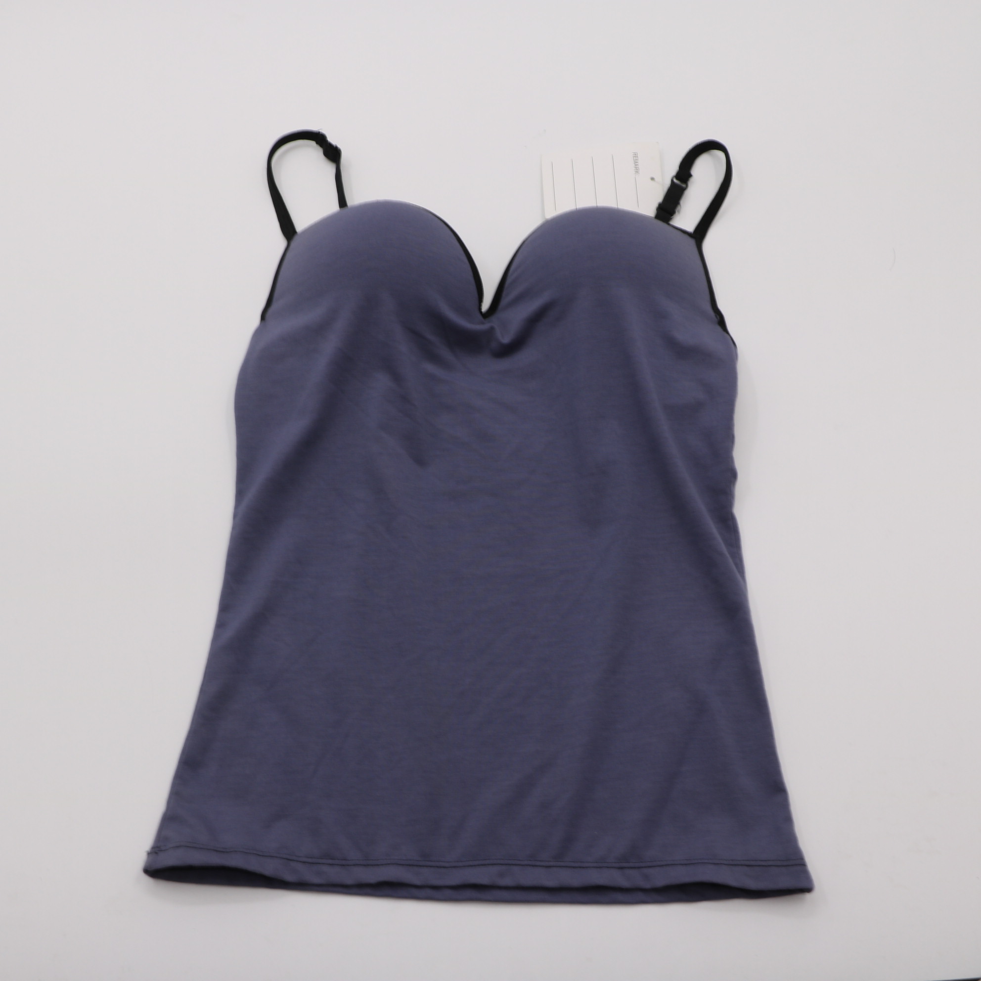 Designed with fully adjustable thin straps for a customized fit. The contrasting black trim adds a stylish touch to this basic camisole.