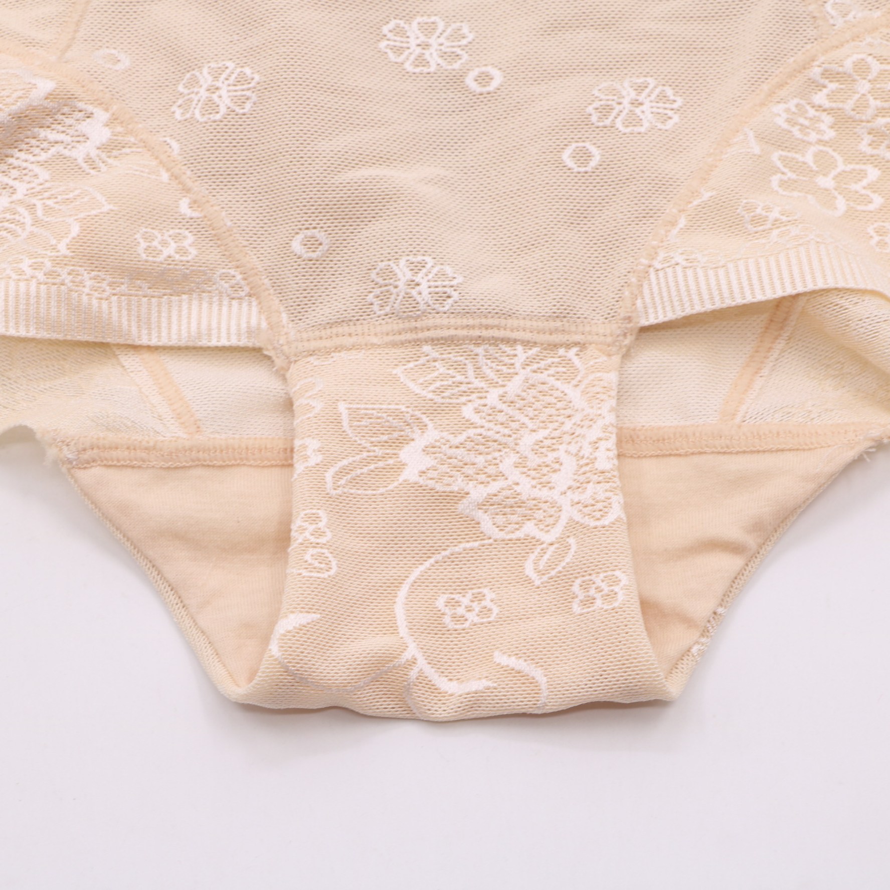 ProductsH633#Breathable Mesh High-Rise Sculpting Briefs with Delicate Floral Lace Edging