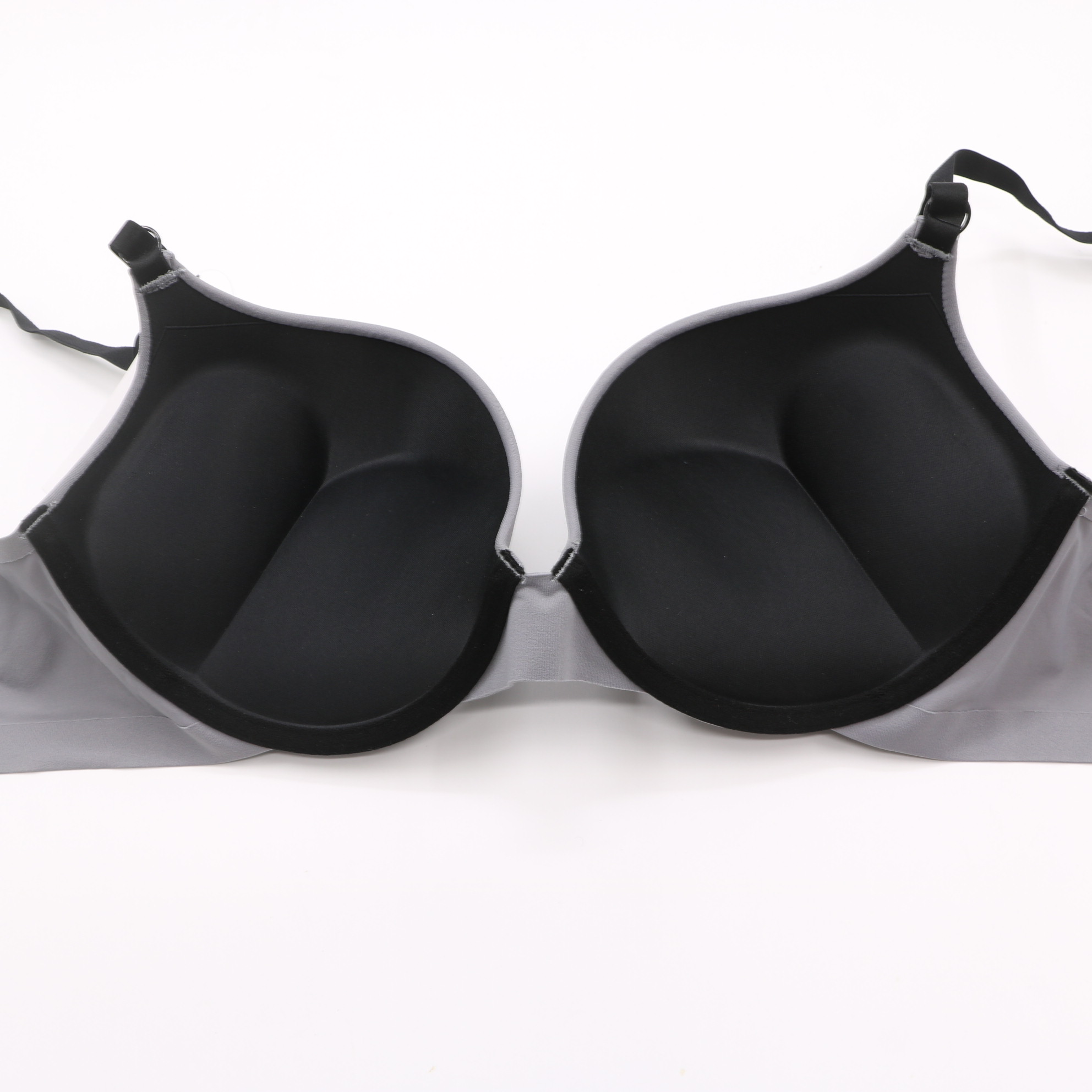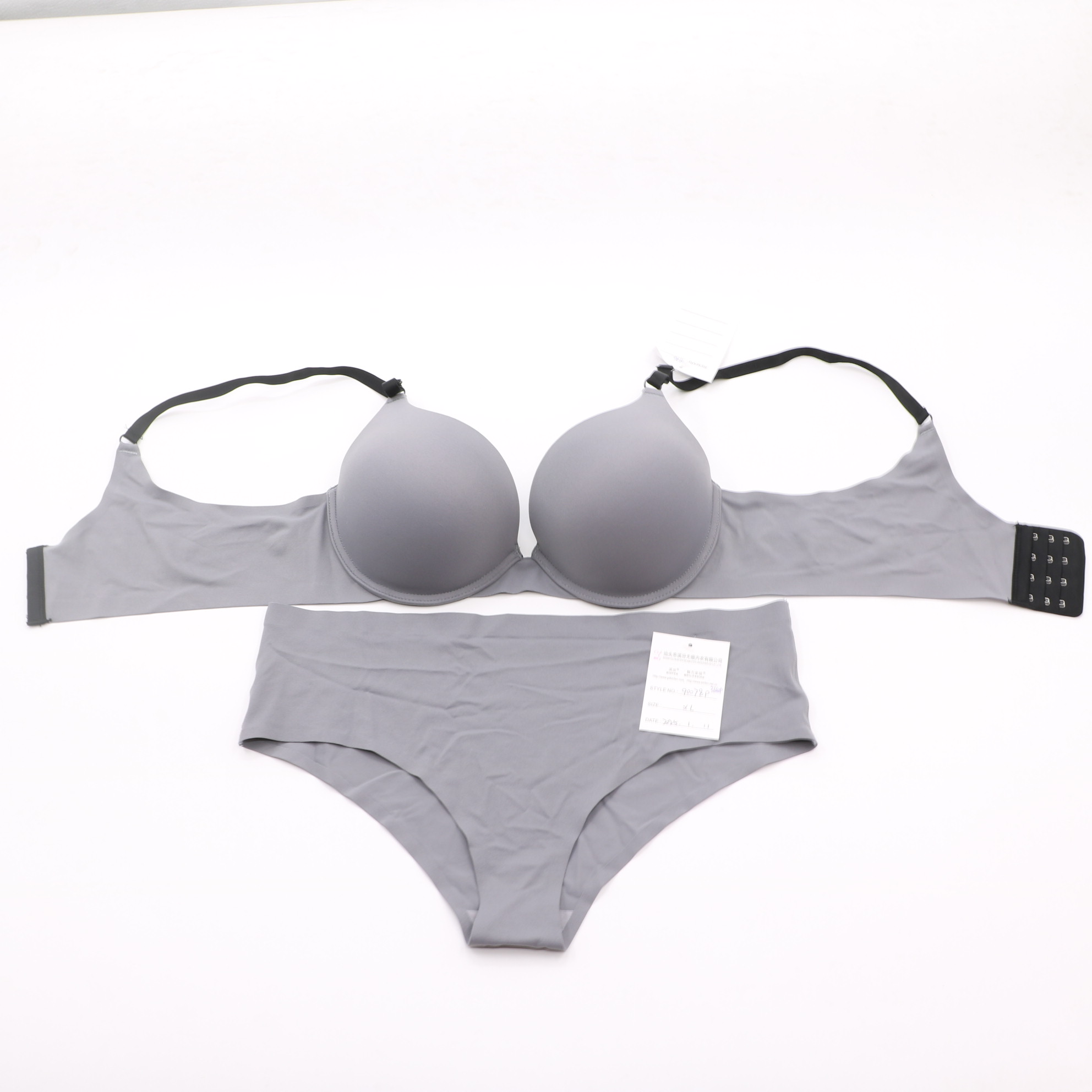 Designed for all-day comfort, this grey bra and panty set features a seamless construction for a second-skin feel. The push-up bra delivers gentle lift and coverage, with adjustable straps to prevent digging in. The coordinating seamless panty offers full coverage and stretch, making it the ultimate combination of comfort and elegance.