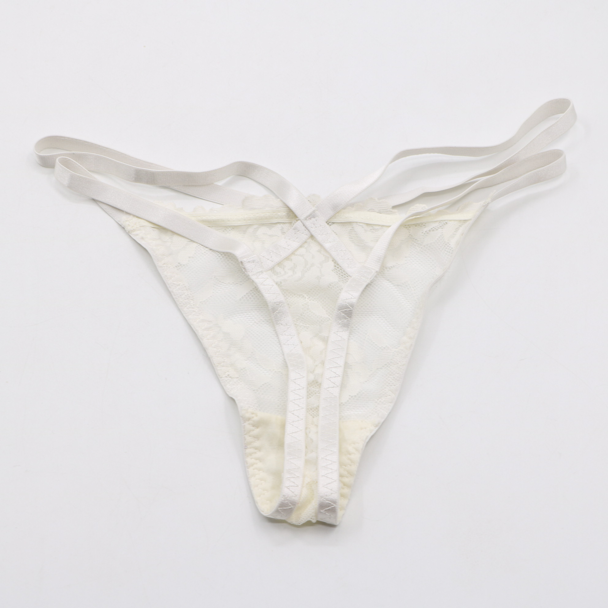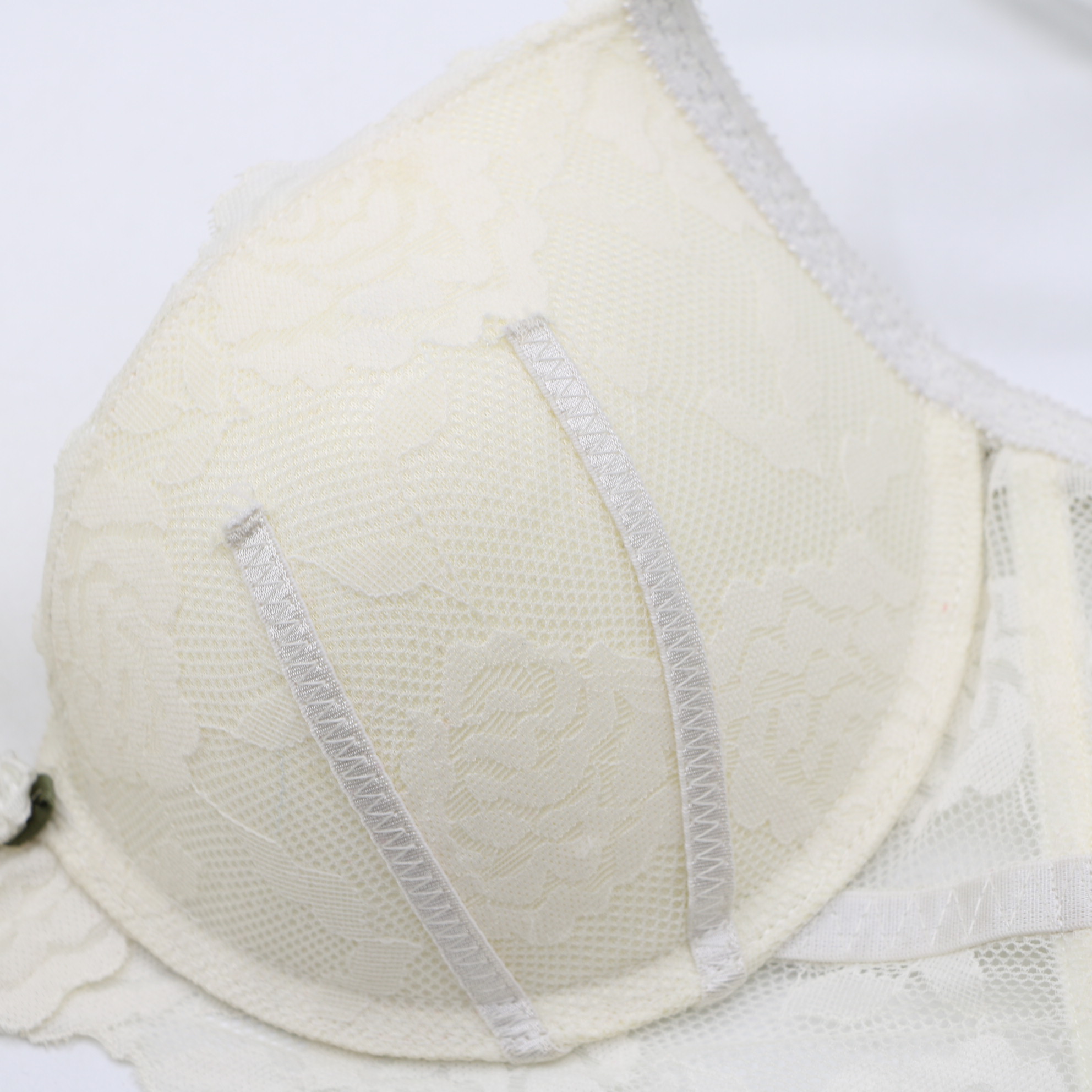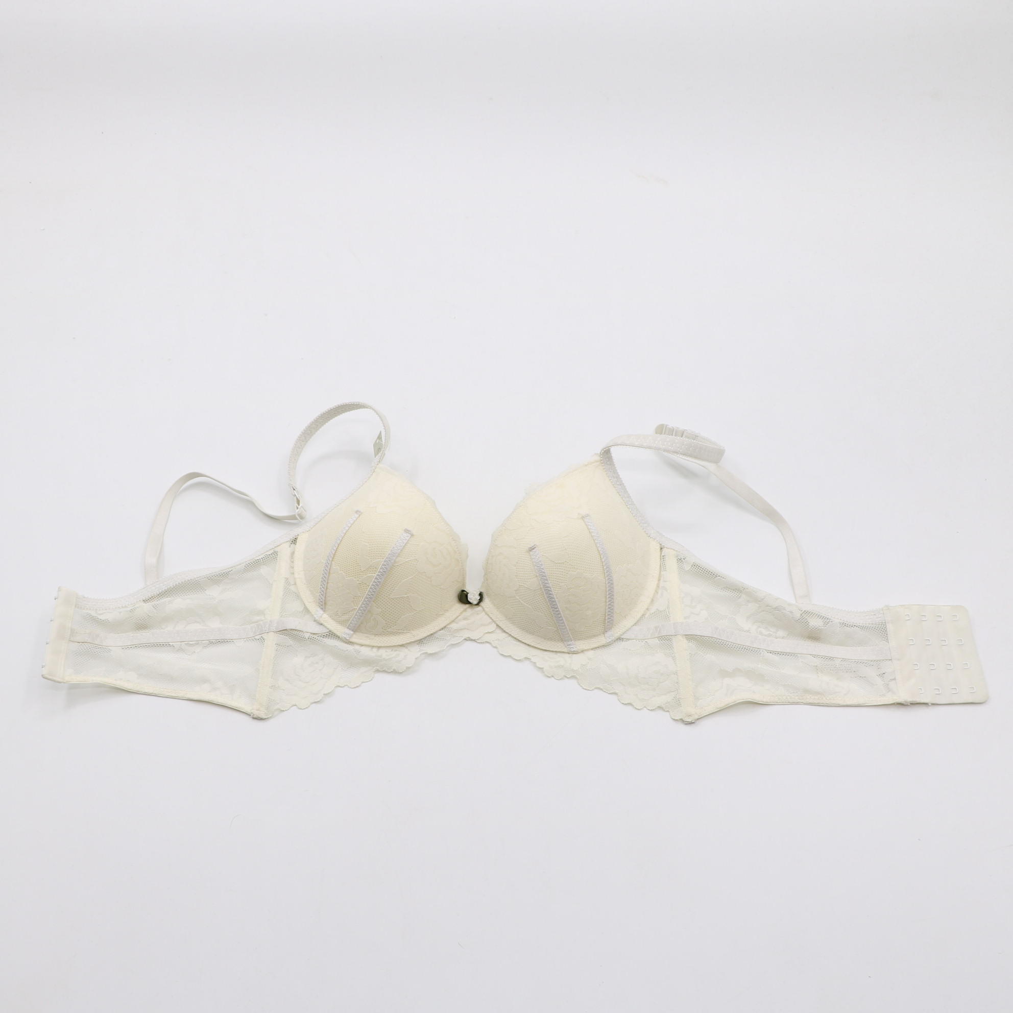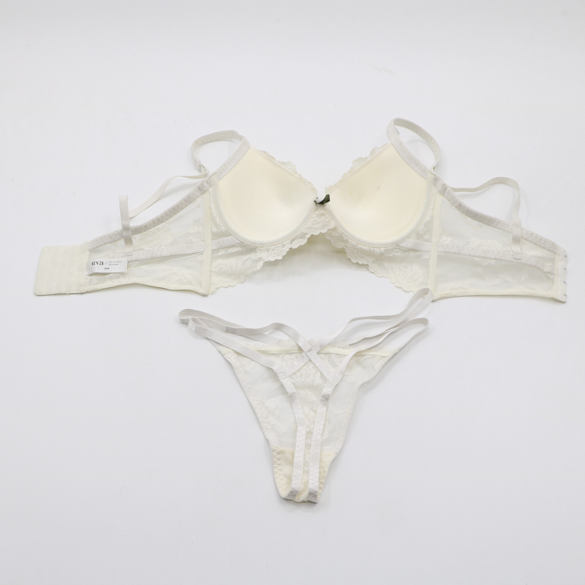 T382399#White Floral Lace Push-Up Bra & Thong Lingerie Set