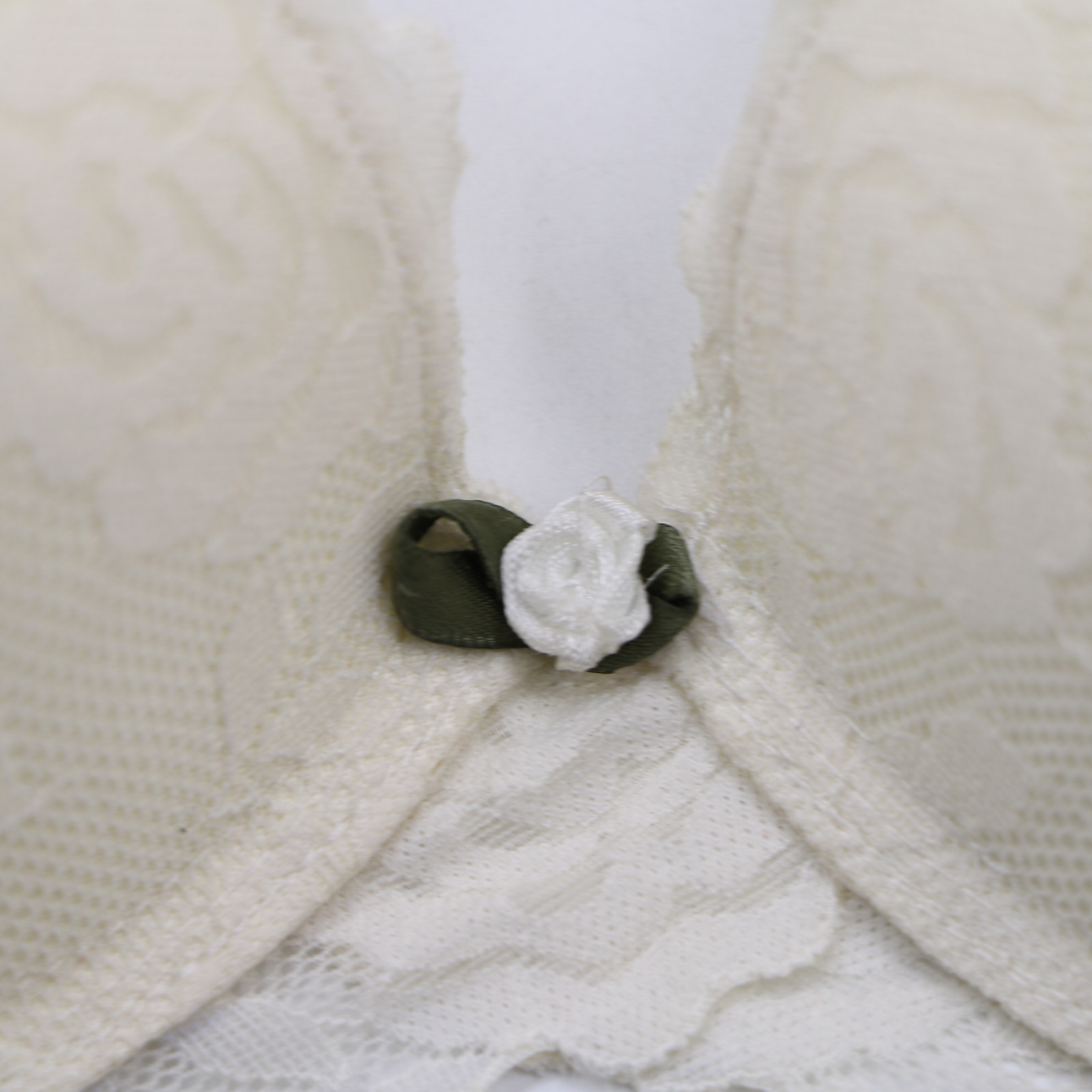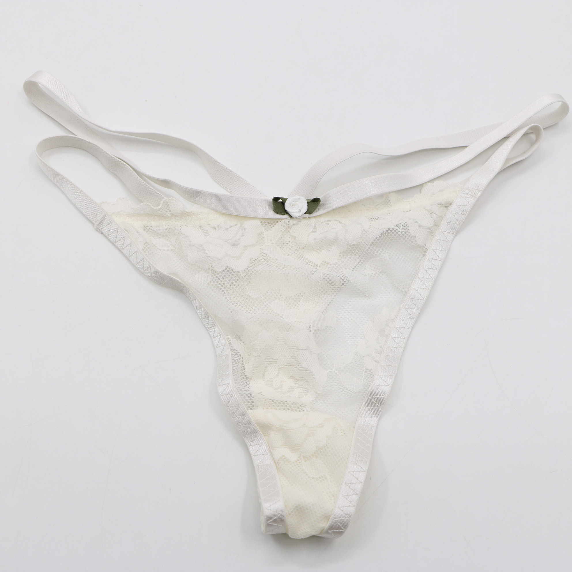 Romantic lingerie set with underwire molded cups, floral lace mesh sides, and a delicate rose accent at the center gore, matched with a low-rise thong for a complete, feminine look.